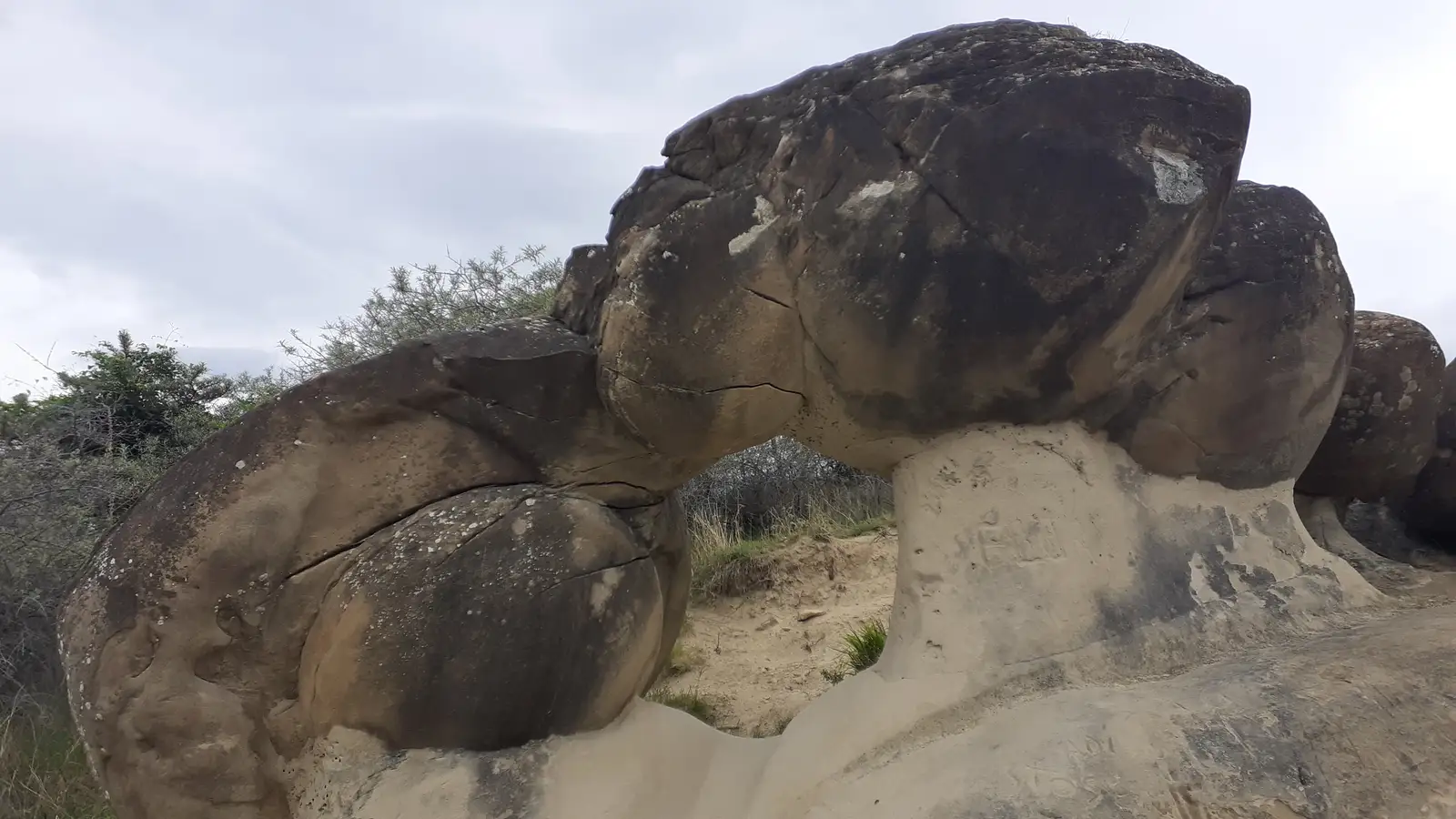 Ne gandim daca sa continuam spre un varfulet din zona sau daca sa ne intoarcem pe una din vai, in cautare de alti trovanti. Ajungem la Balena, Coloana si Delfin, si incepem sa intelegem de ce se numesc asa, Coloana chiar seamana a coloana. Ne hotaram sa coboram pe valea pe care am avut-o in dreapta la urcare. Coborarea este putin abrupta dar este scurta. Padurea este rara dar intunecata. Si din cauza vremii inchise.