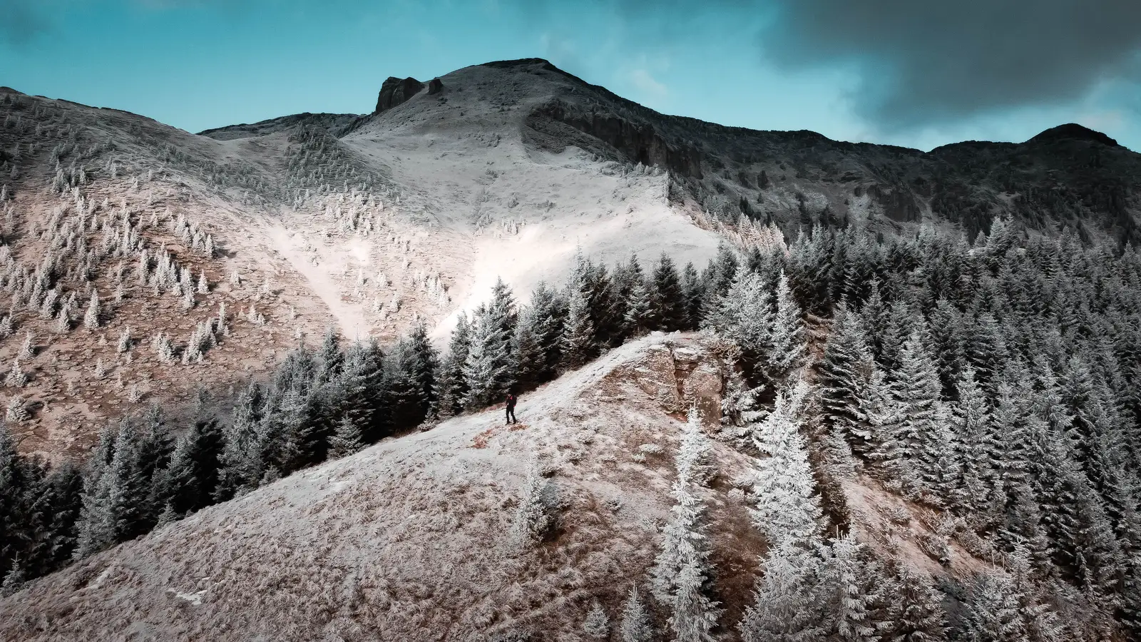 A fost o zona mai dififcila prin zona "Aleea Piticilor" unde era mult jnepeniș,dar cu ajutorul dronei am reusit sa identificam niste zone mai golase pt ajunge pe varf.De pe varf am hotarat sa continuam traseul marcat cu triunghi albastru pana la capat... nu prea ne surâdea 'inotul' printre jnepeni de pe traseul pe care am venit!