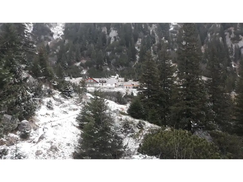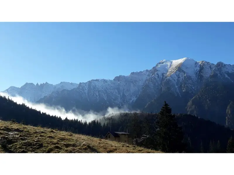 La Cabana Diham am facut o prima pauza, delectandu-ne cu o cafea, si cu privelistea spre Bucegii usor pudrati pe sus, cu primele semne ale iernii. Acum ne gandeam ca am ales bine sa nu mergem pe Take Ionescu.