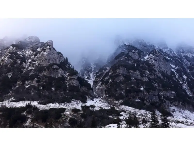 Urcam prin padure pana ajungem la punctul de belvedere. Aici ne delectam cu privelistea de toamna tarzie, inca prezenta pe Valea Malaiesti. De la intersectia de trasee pana la Cabana Malaiesti, am mai mers o ora si jumatatate, cu ceva pauze de filmat si pozat peretii de stanca din stanga noastra.