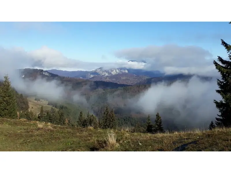 Am mers cam o ora si jumatate prin nori, pana cand vremea a inceput sa dea semne de imbunatatire. Pana am ajuns la intrarea pe Valea Buscoiului a iesit si soarele. Vedeam spre Magura Codlei si Postavaru, dar si spre Muntii Neamtului.