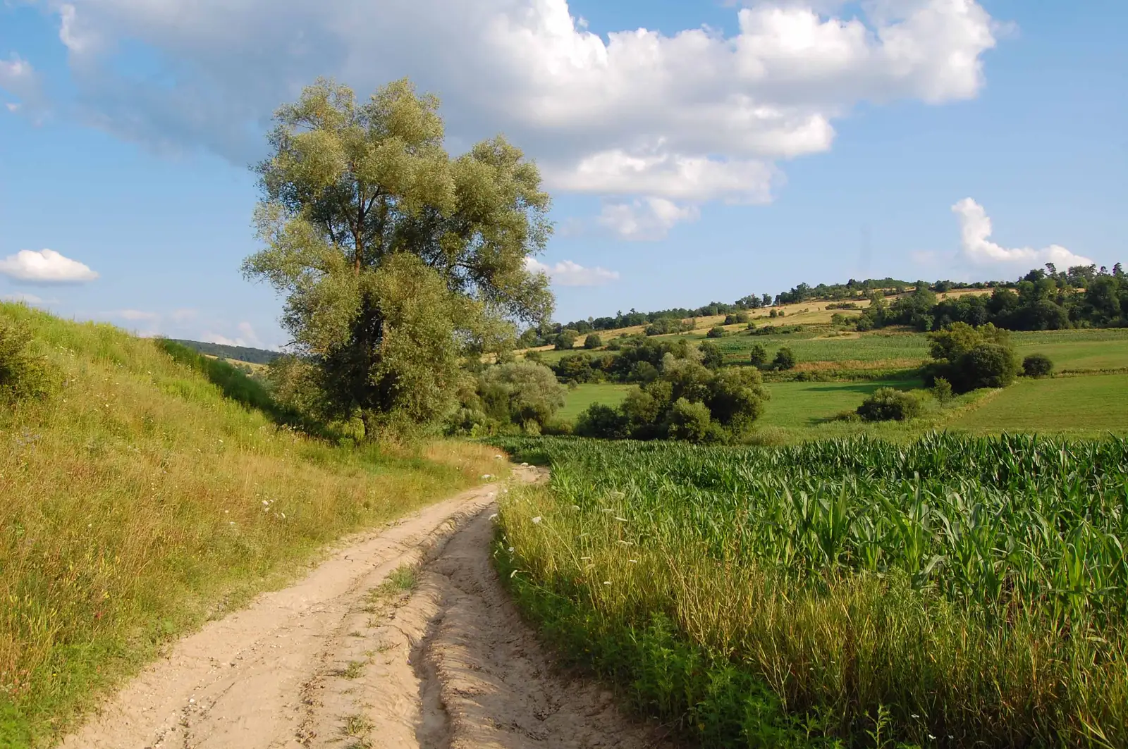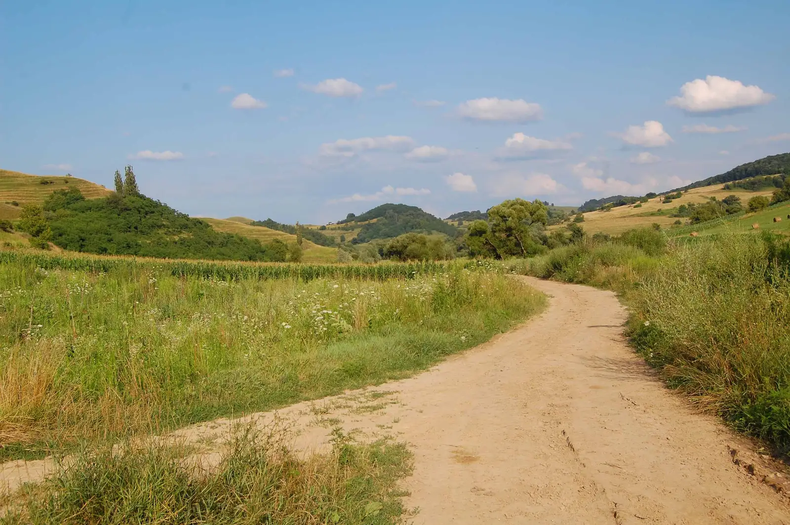 Din partea de nord a localităţii Biertan trecem dealul la Dupuş pe un drum asfaltat la început, apoi pietruit, numai bun pentru încălzirea de dimineaţă. După ce vizităm localitatea, trecem următorul deal pe un drum de pământ la Aţel, întâi prin tufi şuri şi pădure, apoi printr-o luncă cultivată. Vizităm şi această localitate, apoi urcăm pe drumul de vale, pe lângă nişte ferme şi lacuri de pescuit. Acest drum este marcat pe hartă ca fi ind DJ142F, dar nu are nici o amenajare, fi ind un drum de pământ uneori noroios. Trecem un mic pas (nu e mult de urcat) şi coborâm lângă localitatea Richiş, la DJ141B asfaltat. Ne întâlnim cu marcajele MBM şi Via Transilvanica. De aici mai trecem un ultim pas, spre Valea Biertan pe un drum pietruit ce urmează acelaşi tipar - o l uncă, apoi un pâlc de pădure sus în pas. Jos în vale ne aşteaptă un drum proaspăt asfaltat pe care ajungem lejer în coborâre uşoară la Biertan.