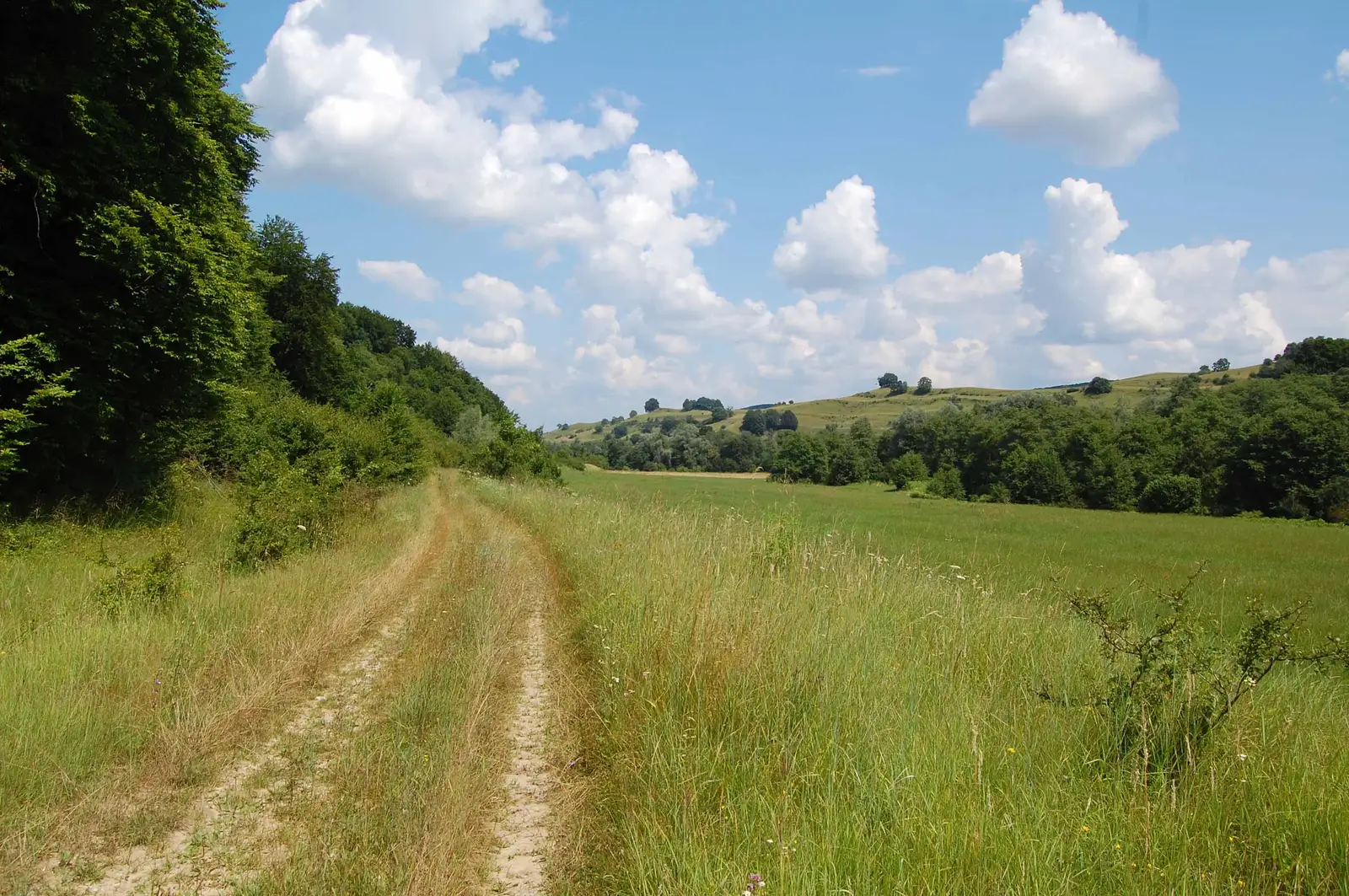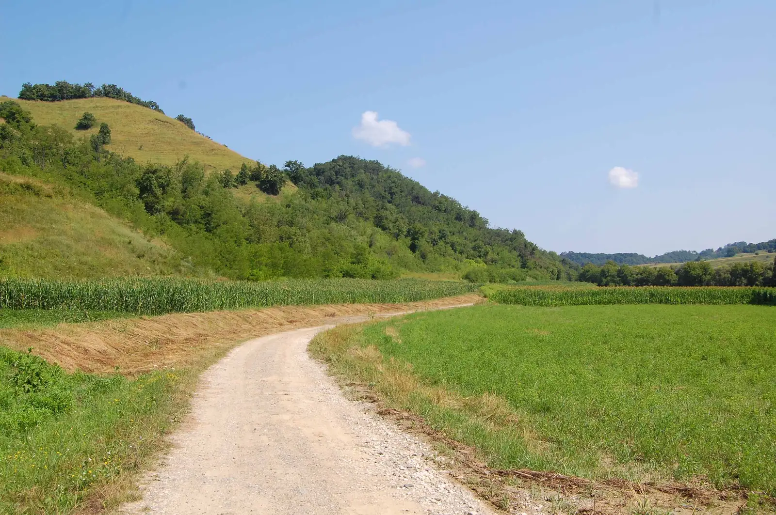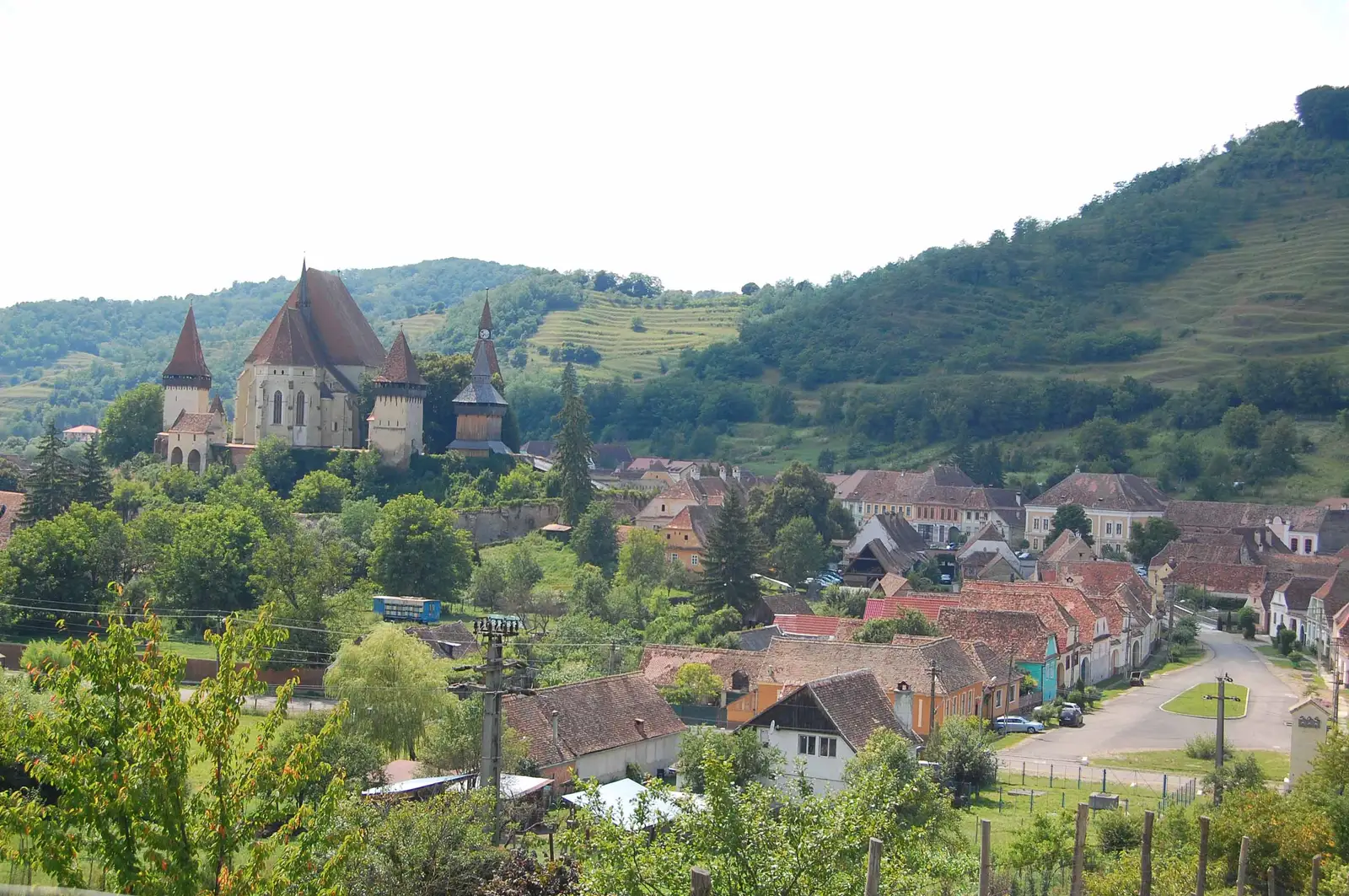 localitatea Roandola, pe care o vizităm dacă dorim. Ne întoarcem la marginea localităţii şi cu ajutorul unui drum de pământ, foarte rar marcat cu CA, care întâi strabate nişte culturi agricole apoi o luncă, apoi pădurea, trecem dealul în localitatea Valchid. De aici până la Copşa Mare folosim DC24 asfaltat. La marginea localităţii urcăm spre dreapta pe un drum de pământ care iese din nou în drumul asfaltat. Mergem pe acesta circa 700 m, după care urcăm (alături de Via Transilvanica) pe dealul din stânga, de unde folosind un drum panoramic coborâm în Biertan.
