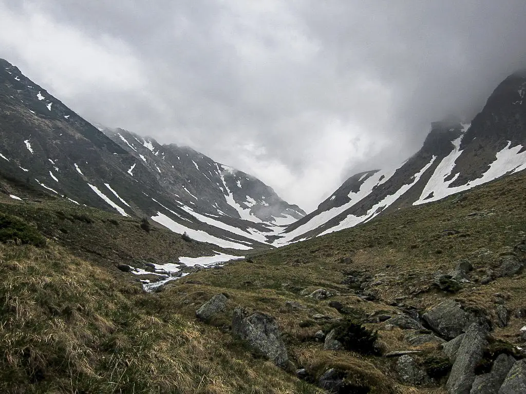 Pornim de la Cabana Bâlea Cascadă şi Transfăgărăşan, trecem râul și traversăm Muchia Bâlea, apoi coborâm ușor până în Valea Doamnei, unde întâlnim marcajele TR (traseul 32) - dinspre Cabana Vama Cucului, coborând de pe Vârful Mierea. Urmăm firul văii, ieșim din pădure într-o poiană unde se află ruinele unei stâne și apoi continuăm pe deasupra văii, captivați de imaginea jgheabului în formă de S peste care apele se scurg în cascade, o zonă foarte frumoasă de pe Valea Doamnei.