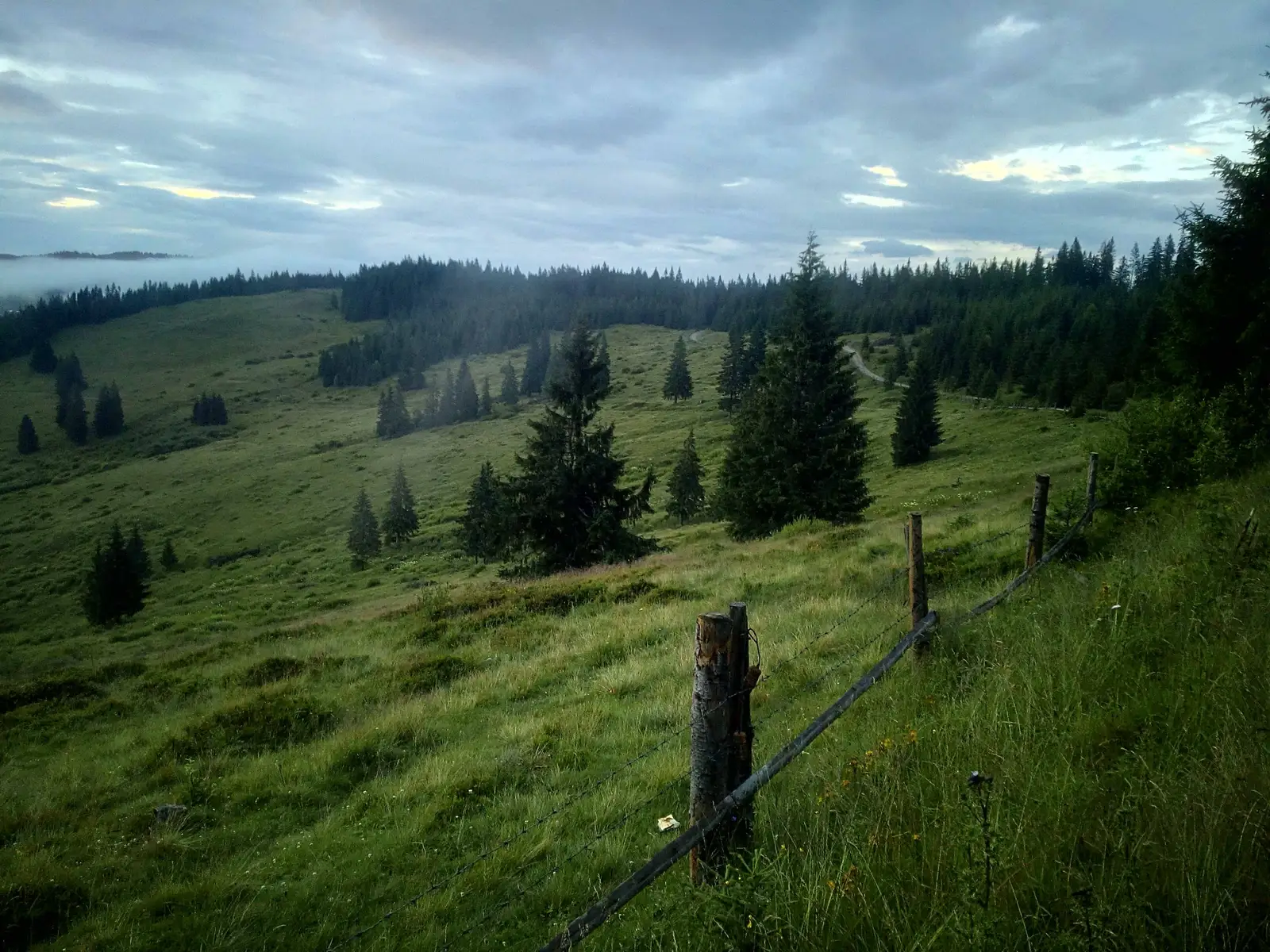 De la cabană urmăm Bandă Galbenă pe drumul de pământ care traversează golul alpin spre Poiana Ciungilor, cu vederi spre Masivul Suhard, flancat de Munții Rodnei și Munții Maramureșului. Schimbăm direcția spre S-SV peste Plaiul Giumalău, marcat Bandă Roșie.