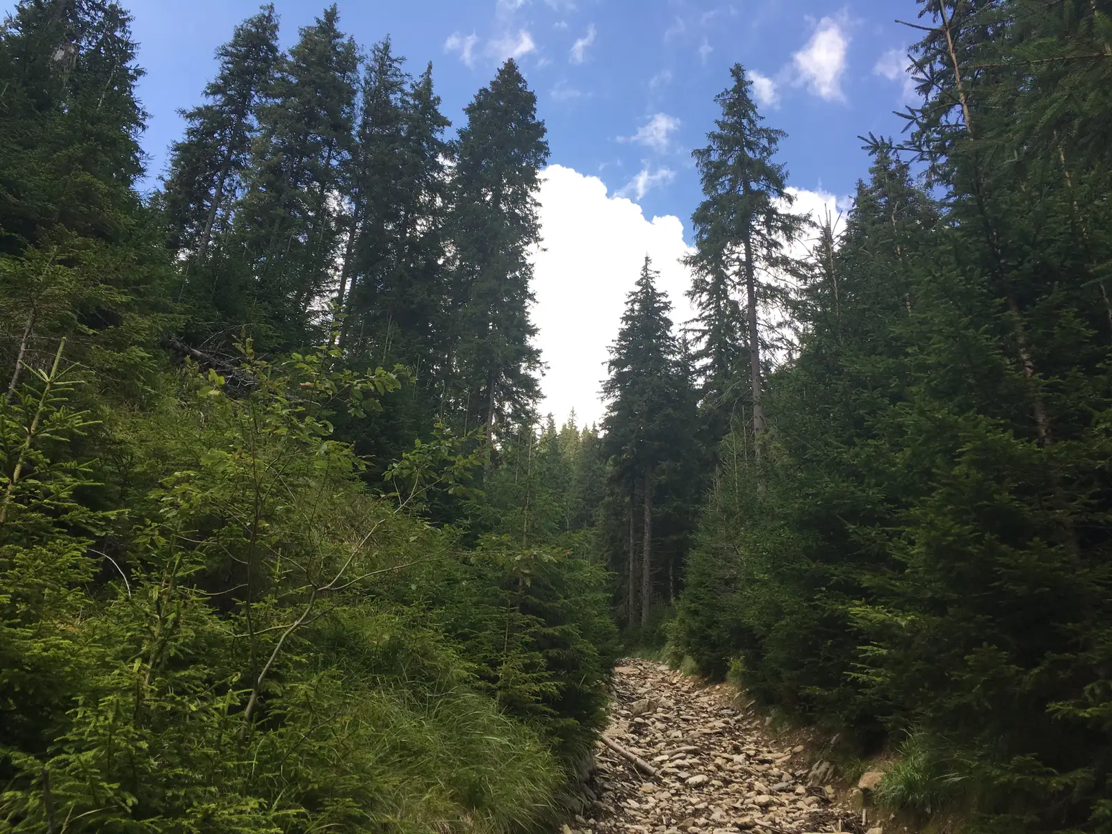 TA urcă susținut prin pădure, apoi printre jnepeni până în Şaua Cânaia (2025 m), unde întâlnim traseul principal de creastă BR (traseul 1). Din șa, putem coborî pe TA (traseul 6) la Cabana Refugiul Cânaia, bine întreținut, unde putem poposi peste noapte.
