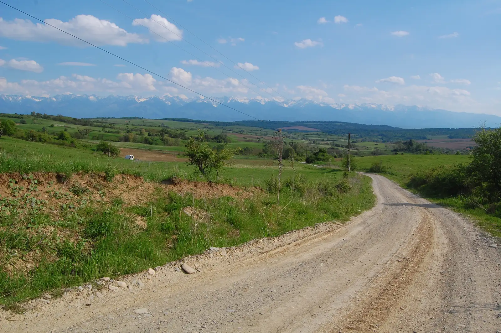 După ce vizităm Abaţia trecem Oltul pe o punte şi ne deplasăm pe o potecă în satul vecin Nou Român. Mergem la Săsăuş pe un DJ105D asfaltat, printr-o zonă frumoasă. Trecem dealul la Şomartin, pe un drum pietruit. Din nou asfalt, până la Bruiu, apoi mai trecem un eal, în satul izolat Gherdeal. Aici, la marginea satului, începem urcarea pe un drum de pământ, pe păşune, apoi pădure. Traversăm câteva poieni, mergem pe marginea pădurii, apoi drumul se face mai bun. La limita judeţelor se termină urcarea, apoi ieşim la păşune. În locul de unde începe coborârea mai serioasă spre Rucăr, marcat cu o cruce de piatră veche cotim spre dreapta pe un drum de pământ care urmează aproximativ linia crestei şi urcă la un punct de belvedere unde este amplasată o cruce mare de lemn. Continuăm pe drumul ce urmează aproximativ culmea, pe lângă nişte stâne. Intrăm în pădure şi ocolim Vârful Stejărişului, apoi coborâm uşor. Drumul merge pe marginea pădurii, apoi urmăreşte culmea împădurită, dar nişte săgeţi ne comută parcursul pe un vechi drum forestier, odinioară pietruit, acum înierbat, pe care mergem mai mult timp şi în fi nal coborâm la Şomartin. Luăm drumul asfaltat spre Nou Român, care întâi merge prin luncă, apoi trece dealul şi coboară accentuat. Jos trecem Barajul Arpaş şi revenim la Cârţa.