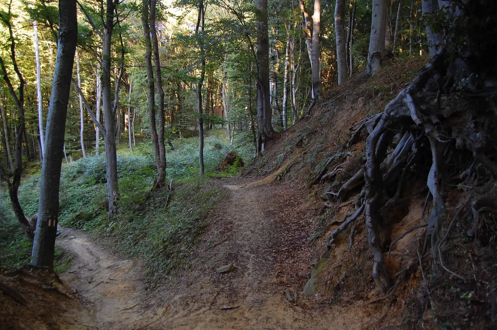 După un mic izvor, traversăm o zonă pitorească cu trovanţi, marcată cu panouri tematice, lăsăm BA și BP la dreapta și ieșim în drumul spre Casele Micești. În această zonă există 2 trasee tematice: Traseul Broscuțelor - marcaj Broscuțe Albe (traseul 8) și Traseul Wonderland - marcaj Punct Verde pe fond Portocaliu (traseul 16) - creat pentru echitație.