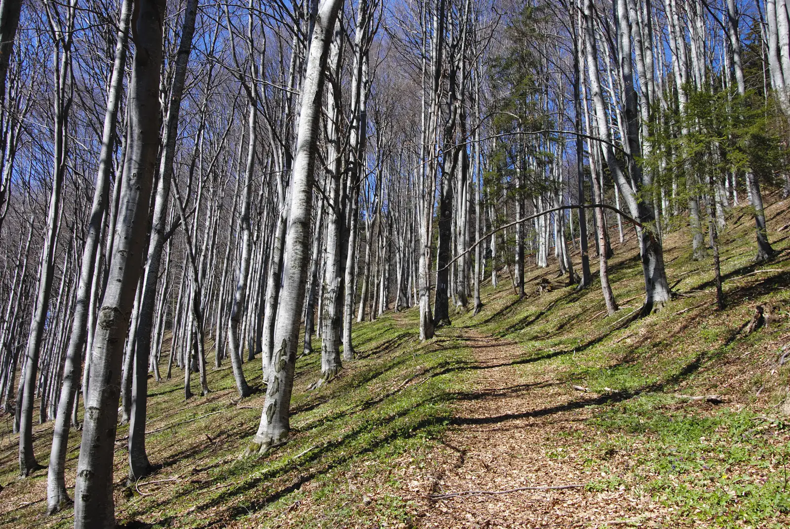 Facem pe şosea cca. 1,6 km, facem stânga, pe drumul forestier Babeș, apoi urcăm pieptiș pe o cărare largă, umbrită de o pădure tânără de fag amestecat, înapoi la DN1A. De-aici urmăm în mare parte direcția dată de drum, tăind serpentinele acestuia și urcând pieptiș de-a coasta spinarea muntelui Bratocea prin pădure, în paralel cu drumul național. Revenim la asfalt la cota 1250 m, de unde în 400 m, ajungem în pasul Bratocea (1270 m), la intersecția cu traseul de creastă BR (traseul 1).