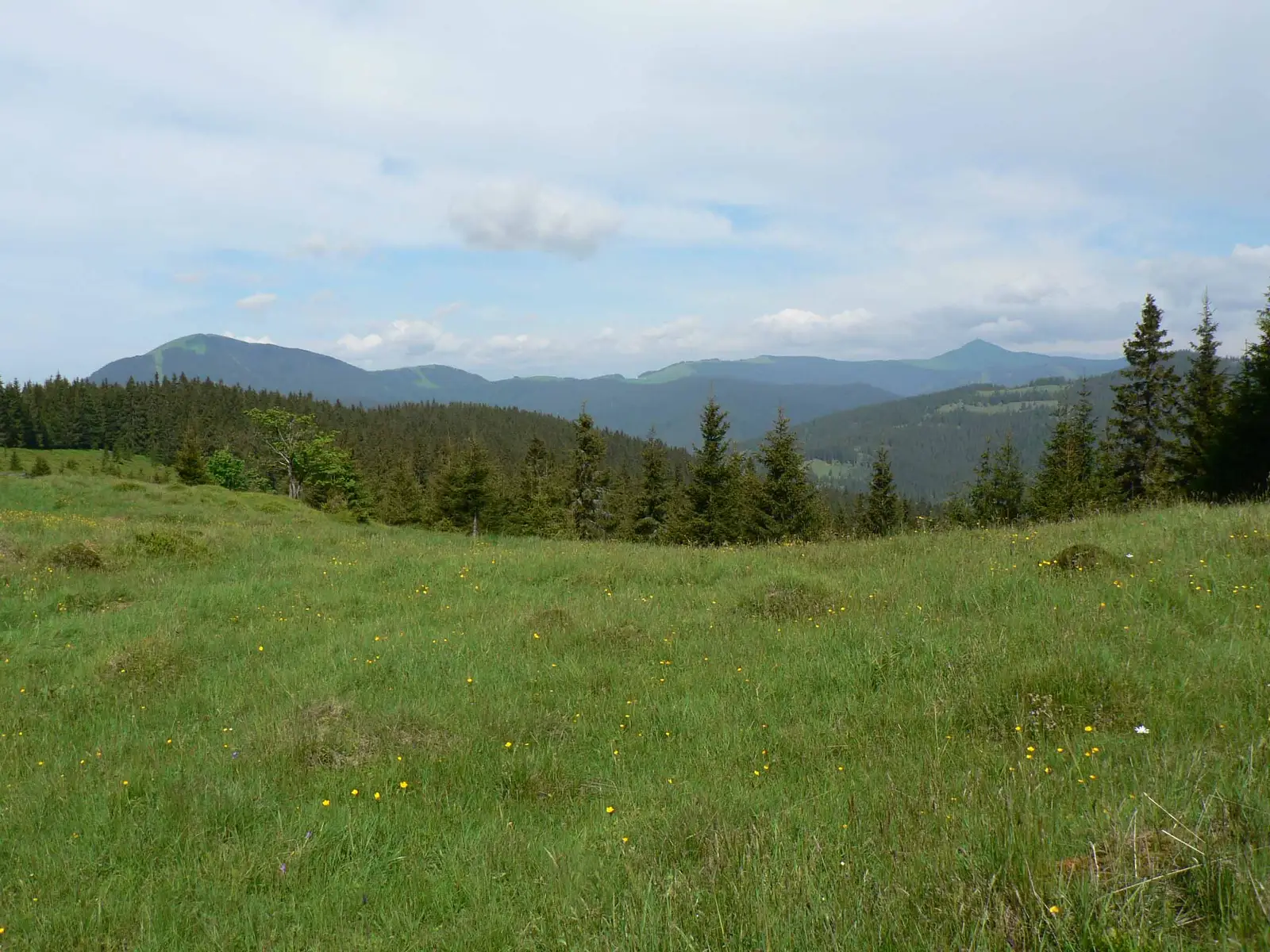 Continuăm pe faţa nordică a Vf. Fărăoane (1715 m) pe un drum înierbat pe alocuri, coborâm prin gol alpin, prin pajiști cu tufe de afin şi merişor, pe creasta Masivului Fărăoane, apoi pe latura nordică a Vf. Ouşorul (1639 m). poposim într-o poiană unde întâlnim traseele spre Vf. Ouşorul (Triunghi Albastru) și Dorna Candrenilor (Cruce Albastră - accesibil MTB).
