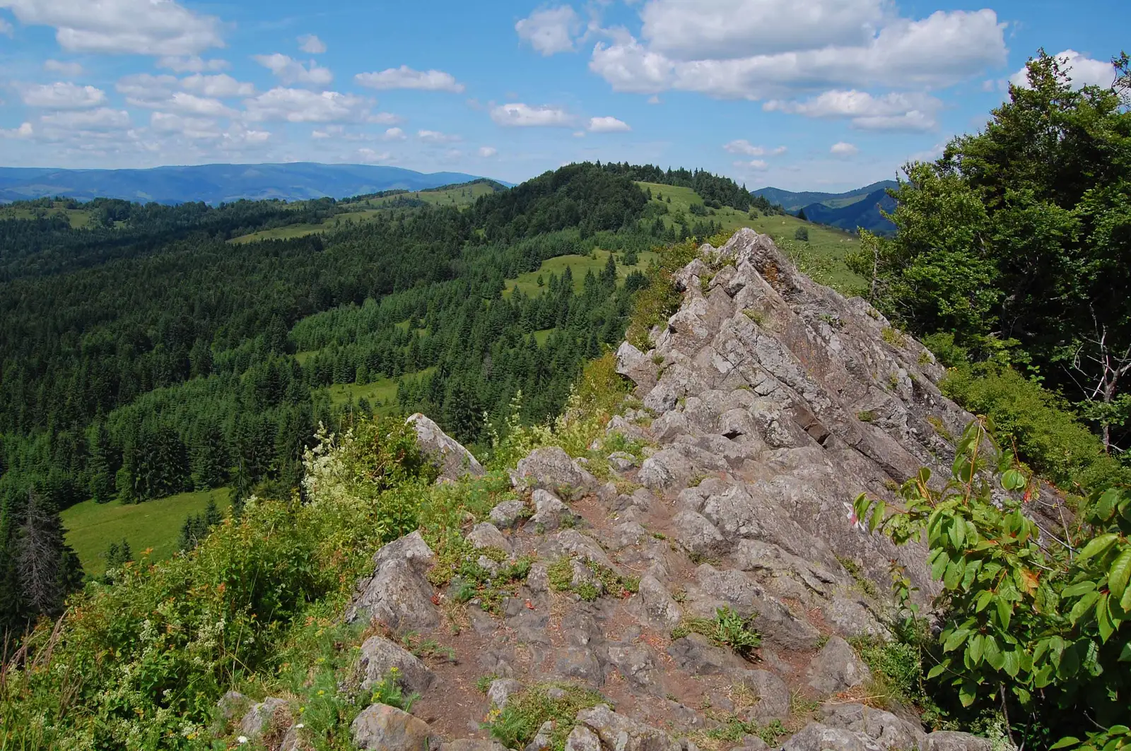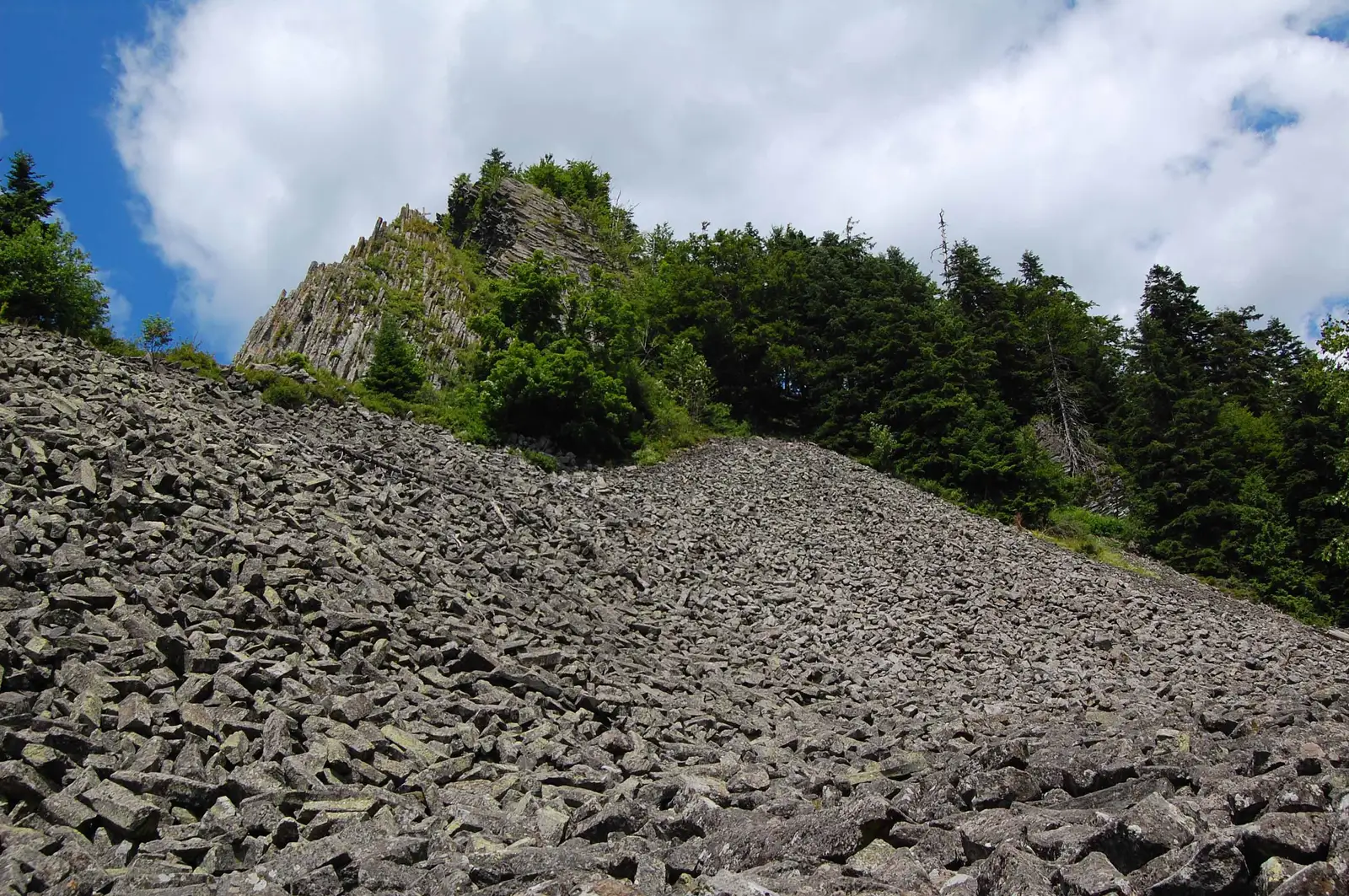 Pentru a ajunge la punctul de plecare al traseului putem folosi traseele TA, CR sau drumul în curs de asfaltare care urcă din Bucium. Împreună cu traseul CR intrăm în pădure și urcăm ușor. Temporar ne despărțim de acesta, trecând pe la ghețar (mai multe stânci între care este o fereastră prin care vine răcoarea gheții de dedesupt). Spre dreapta se desprind mai multe poteci nemarcate pe care putem să ne apropiem de baza peretelui cu stânci prăvălite, pentru a admira monumentul de jos, însă marcajul PR ocolește prin stânga (nord-vest). Într-o poiană unde se află montat un stâlp indicator începe urcușul mai abrupt. Urcăm câteva mici serpentine și ieșim la marginea abruptului, într-un punct de belvedere din care priveliștea este magnifică. După un binemeritat popas coborâm abrupt prin pădure, apoi pe un mic grohotiș până la un drumeag, unde de asemenea se află un stâlp indicator. Urmăm acest drum spre dreapta (sud-vest), iar după aproape 500 m îl părăsim spre dreapta pentru a poposi la un izvor rece dotat cu un loc de popas amenajat. De aici și până la punctul de unde am plecat mai sunt doar 200m.