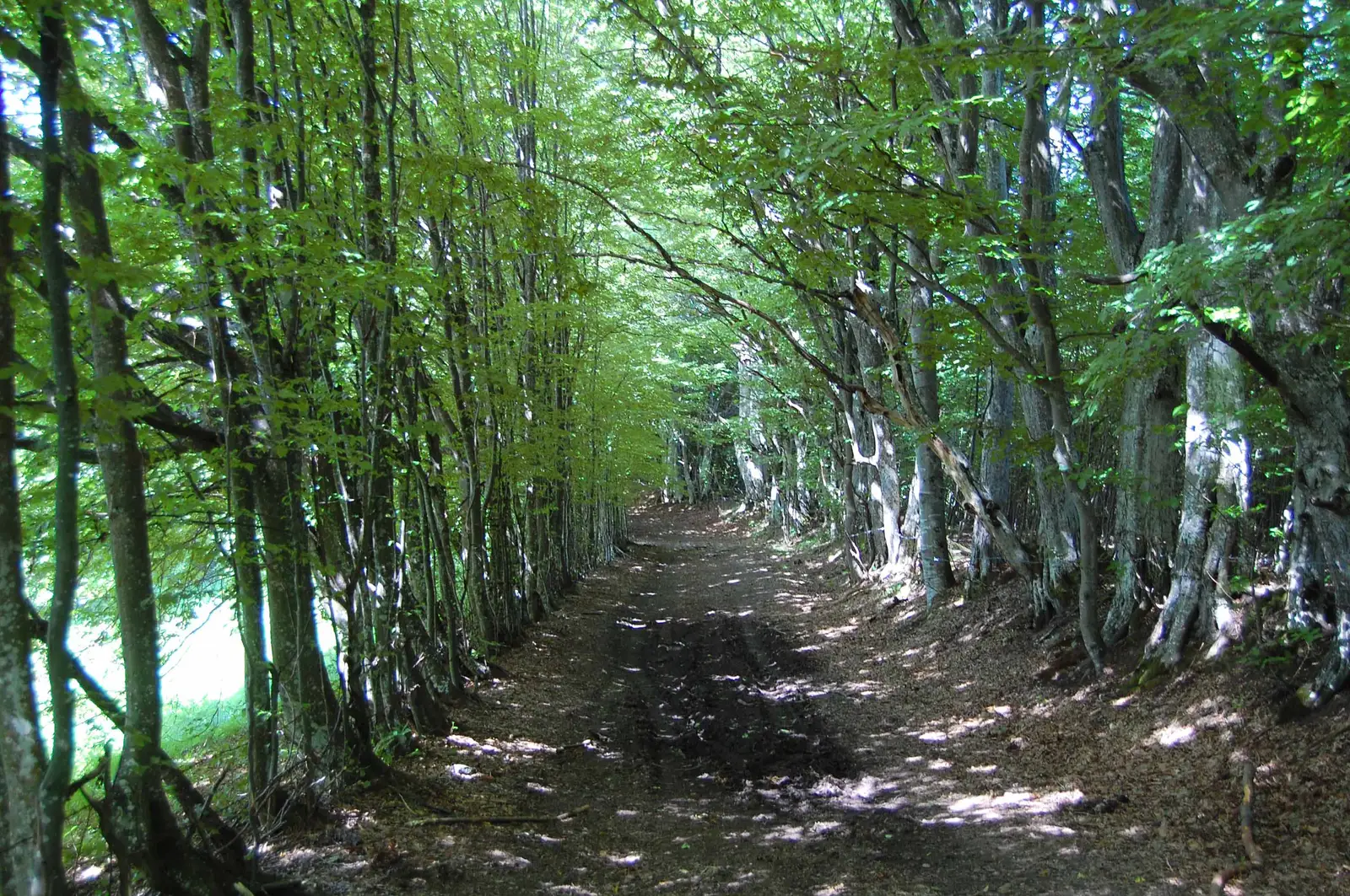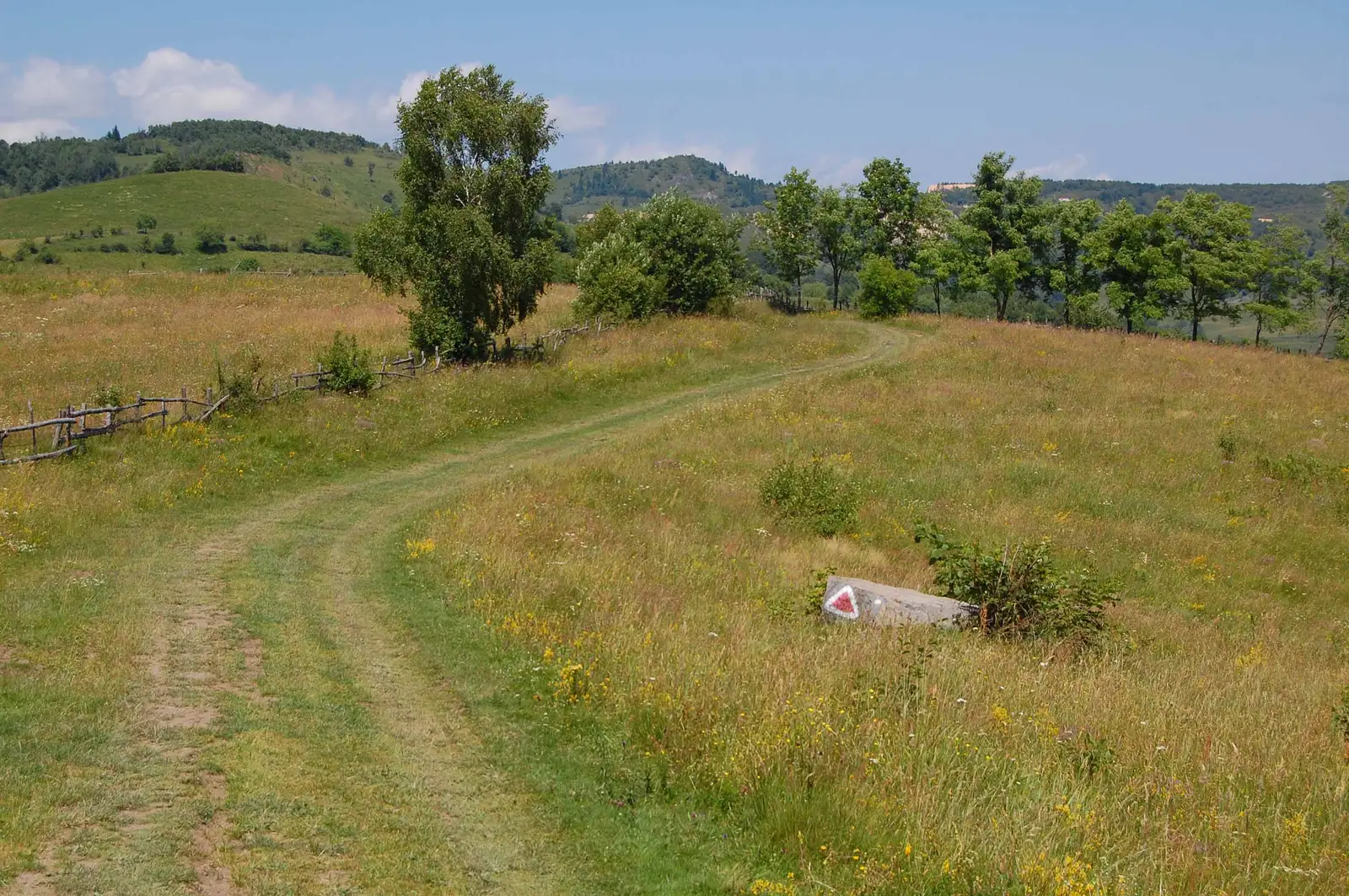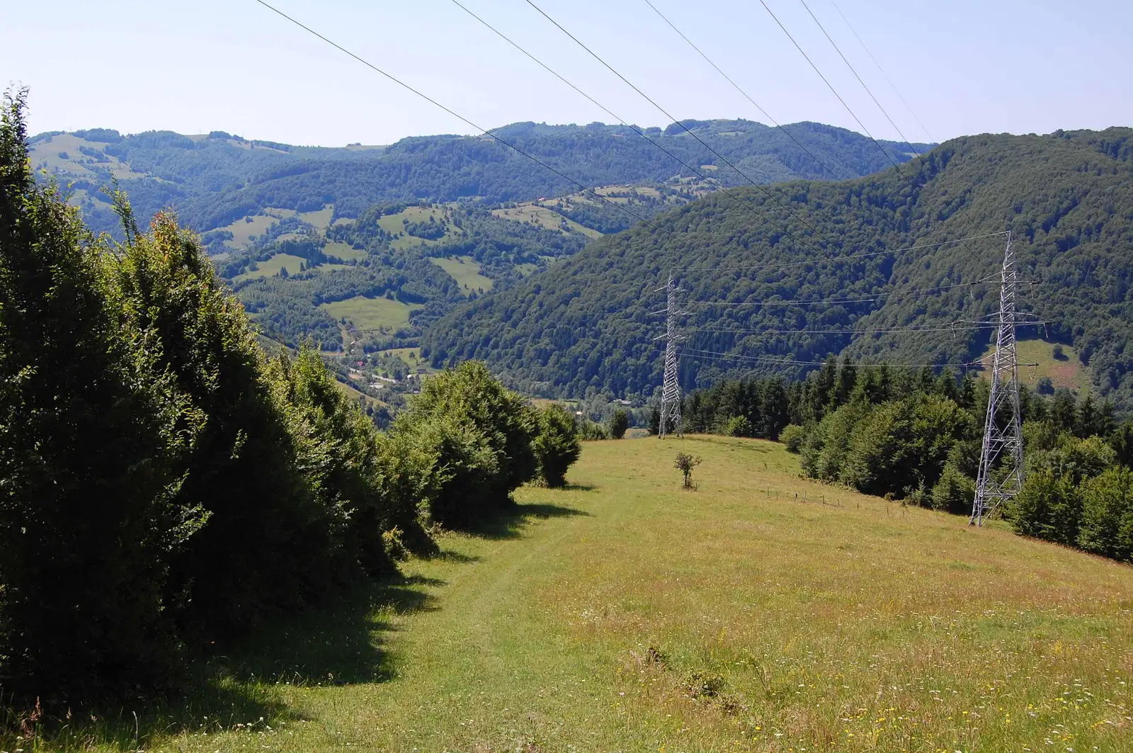 Din Piața Centrală coborâm întâi pe asfalt spre Gura Roșiei, iar după 1,3 km cotim spre stânga (sud) pe un drum de piatră care iese din localitate și trece prin poieni și pâlcuri de copaci. La Tăul Țapului (Tăul Găuri) schimbăm direcția spre stânga și începem urcușul pe dealul Hebatului. Traseul cotește ușor dreapta și începe o lungă coborâre aproximativ de-a lungul unei linii electrice de înaltă tensiune pe care o traversează de mai multe ori. Peisajul este pitoresc, o alternanță de pajiști sălbatice cu păduri întunecoase sau pâlcuri de mesteceni. Ne apropiem de orășelul Abrud, cuibărit jos în vale, dar la un moment dat (în apropiere de un ciurgău - o adăpătoare pentru vite) părăsim linia dealului spre stânga și coborâm abrupt în Valea Corna, la asfalt. Urmăm drumul asfaltat construit de-a lungul văii Corna în amonte circa 2 km și în localitatea Bunta, lângă niște garaje îl părăsim spre dreapta pe un drumeag care urcă în serpentine. Marcajul taie primele serpentine pe scurtături, apoi continuă tot la deal. Efortul ne este răsplătit de o priveliște tot mai cuprinzătoare asupra văii, iar în final ajungem pe culmea Dealului Măgulicea, unde urcușul se domolește și la o răscruce de drumuri marcajul cotește stânga (nord-est). Urmează o plimbare printr-o zonă pitorească cu poieni și pâlcuri de copaci, până întâlnim (lângă niște garaje) drumul asfaltat ce urcă din Abrud la mina Roșia Poieni. Urmăm acest drum aproape 1 km, apoi împreună cu traseul TA îl părăsim spre stânga pe un drumeag. La o intersecție de cinci drumuri de sub Piatra Corbului întâlnim traseul PR. Aici păstrăm direcția înainte pe un drum de piatră, iar din apropierea Tăului Brazi intrăm pe drumul îngust asfaltat care ne duce înapoi în Piața Centrală din Roșia Montană.