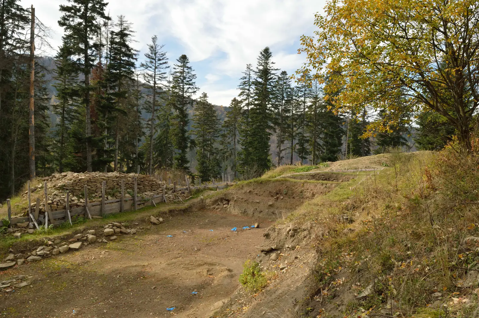 Traseul pleacă de lângă Campingul Valea Zânelor, pe un drum pietruit. După aproximativ 350 metri traversează râul Covasna pe un pod betonat şi lasă în partea dreaptă o cabană privată. După încă 150 metri trece pe lângă o gospodărie. Din acest punct continuă pe drum pentru încă 1,7 km, iar apoi se înscrie spre dreapta pe o potecă ce conduce în interiorul cetăţii dacice din Covasna (Cetatea Zânelor).