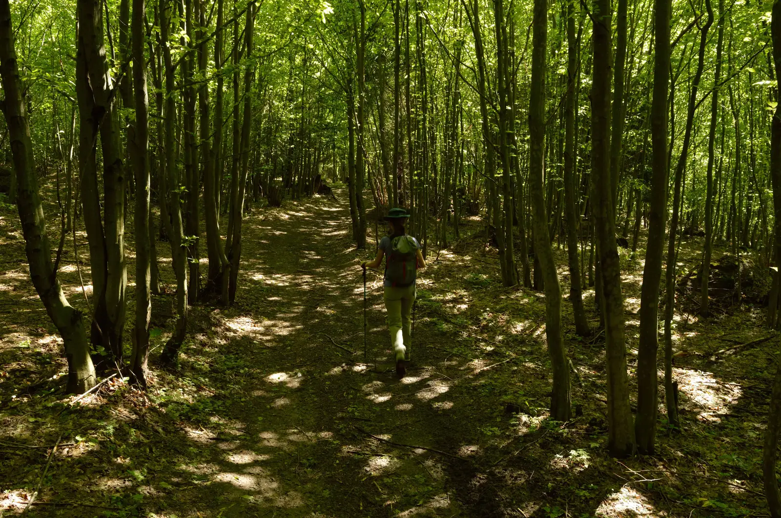 Traseul începe pe strada Zânelor, în apropierea Hotelului Clermont. Pe primii 2,5 kilometri marcajul urmăreşte drumul asfaltat, care se transformă apoi în drum pietruit, până în apropierea unui releu de comunicaţii. Din acest loc, traseul se încrie pentru următorii 2,5 kilometri în pădure pe un drum îngust, orientat pe direcţia nord-est. Traseul întâlneşte în cele din urmă traseul PR, alături de care urcă până în Poiana Palfei.