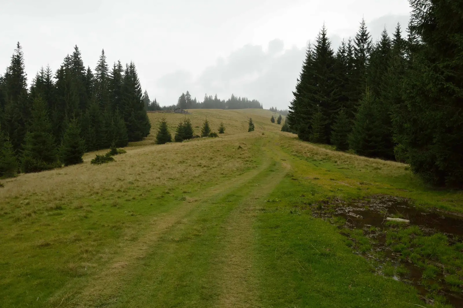 Traseul porneşte de la ieşirea dinspre est a localităţii Covasna, desprinzându-se din traseul PA care ajunge aici din faţa Hotelului Bradul. Avansează pe un drum forestier pietruit care urcă pe valea Pârâului Chetag (Ketág p.), însoţit pentru 2,9 kilometri de marcajul PG. Lasă apoi în stânga acest marcaj şi continuă în amontele Pârâului Chetag (Ketág p.) pentru încă 700 metri. Părăseşte spre stânga drumul pietruit şi se înscrie pe un forestier îngust care intră în pădure. Parcurge 3 kilometri pe acest forestier pentru a ajunge apoi în Poiana Iacob unde reîntâlneşte traseul PG. Cele două marcaje traversează spre est poiana, iar după aproximativ 500 metri intersectează traseul PA.