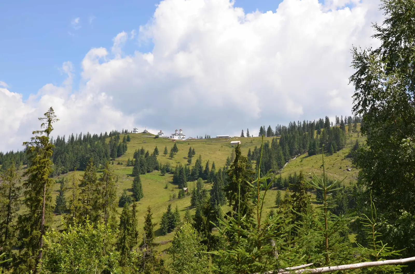 Până la Mănăstirea Piatra Tăieturii traseul se desfăşoară în totalitate pe culmea Munţilor Bistriţei, traversând poieni şi păşuni, cu vederi spre Masivul Giumalău (înspre nord-vest) cât şi Munţii Călimani. De la Mănăstire Bandă Roșie continuă spre Pasul Păltiniş, în timp ce noi coborâm pe un drum forestier bine întreținut până în centrul comunei Panaci.