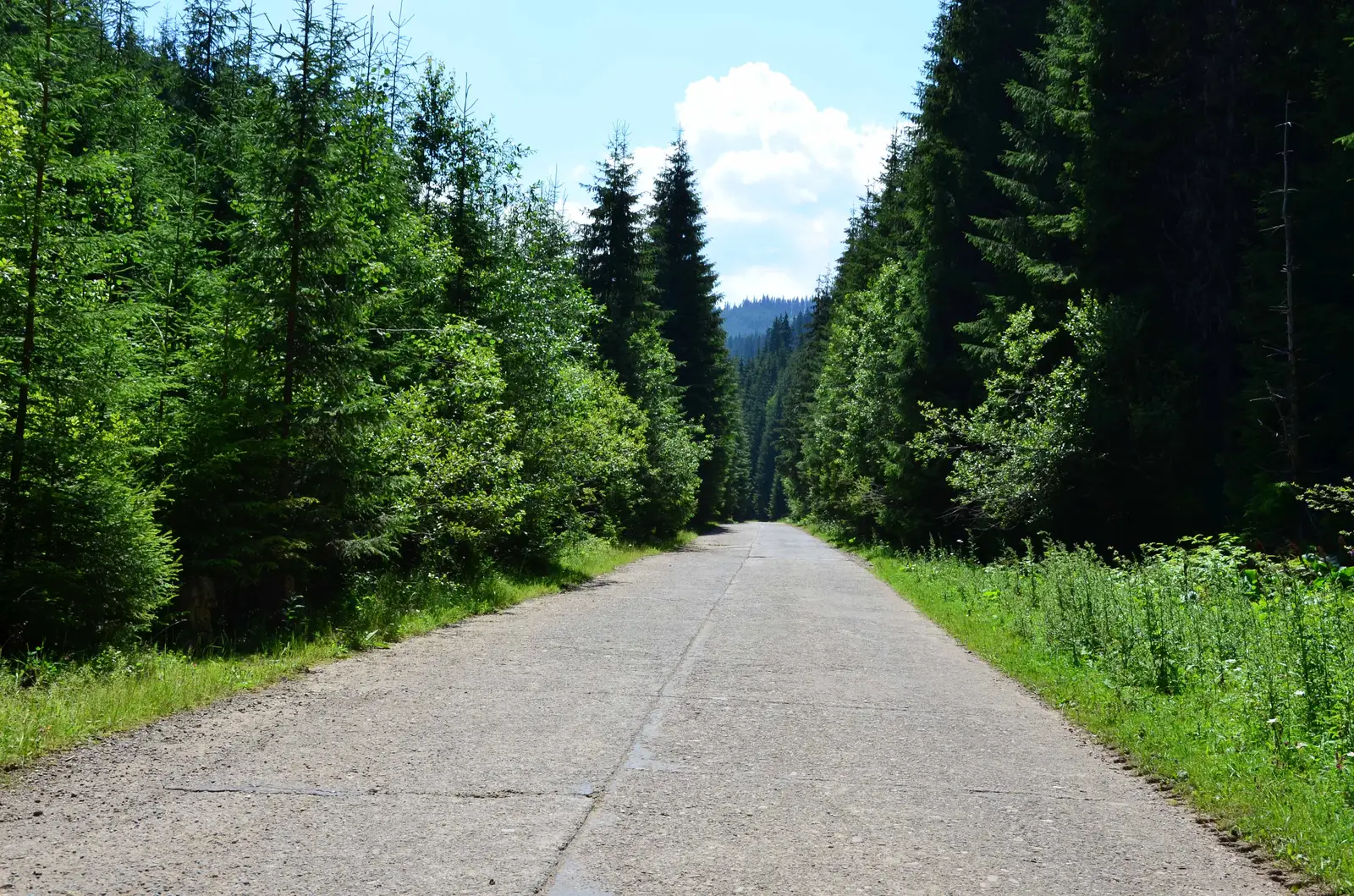 Părăsim asfaltatul spre Pârâul Pinul, traversăm o zonă cu steril (haldă de depozitare a vechii mine) și continuăm spre valea Pârâului Dumitrelul Mare. Din loc în loc avem priveliști frumoase asupra ”trapezului” format de vârfurile Negoiu Unguresc şi Pietrosul Călimani.