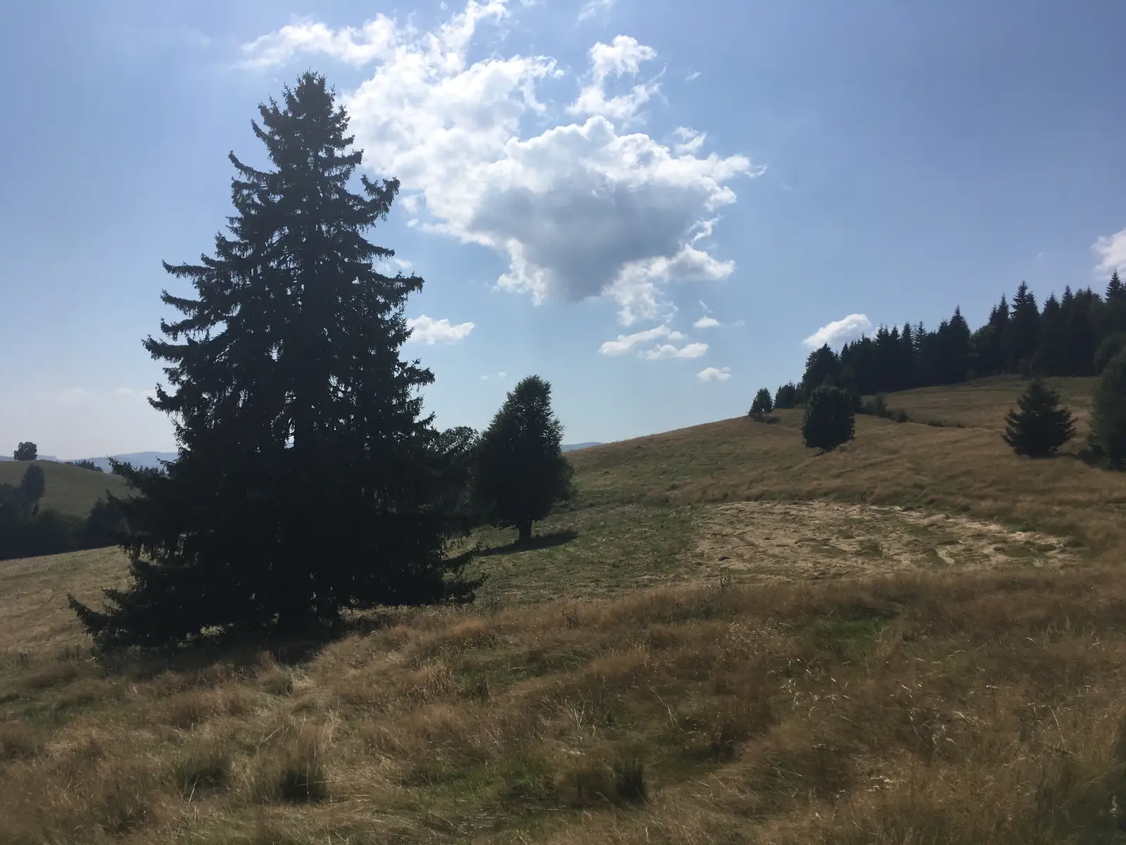 După ce ieșim din sat, continuăm pe drumul de acces spre Crinţ, de-a lungul pârâului Sibiel, cca 4 km, până la schitul Sibiel, o fostă mănăstire de călugări ce are în incintă o veche biserică de piatră despre care se crede că ar data de la începutul sec. XVIII (sursa). Lângă schit facem stânga și urcăm în serpentine un drum forestier pe valea pârâului Sibielaş, drum care ne conduce în cca. 1.5 h în Poiana Godia, cu numeroase case de vară.