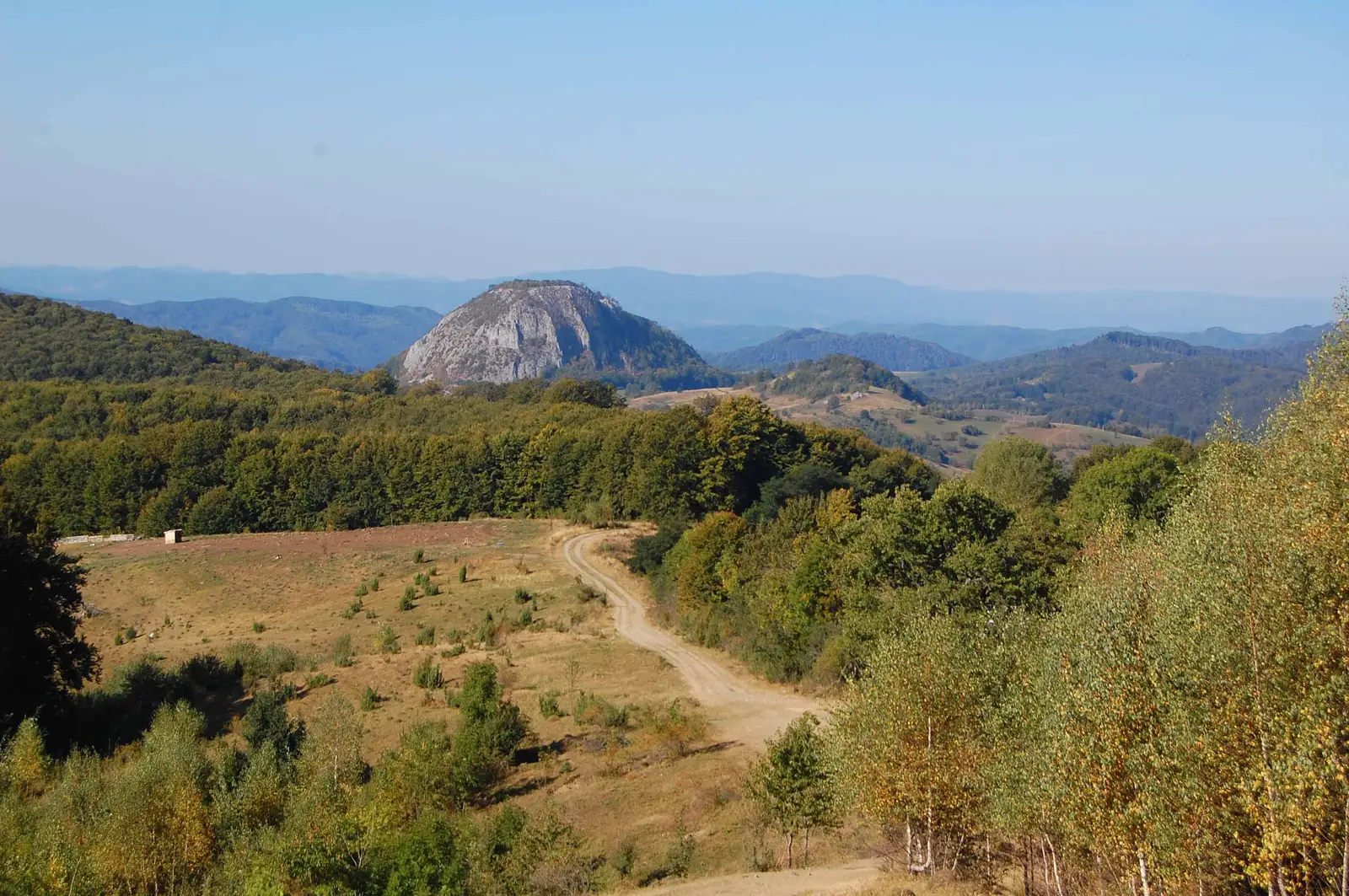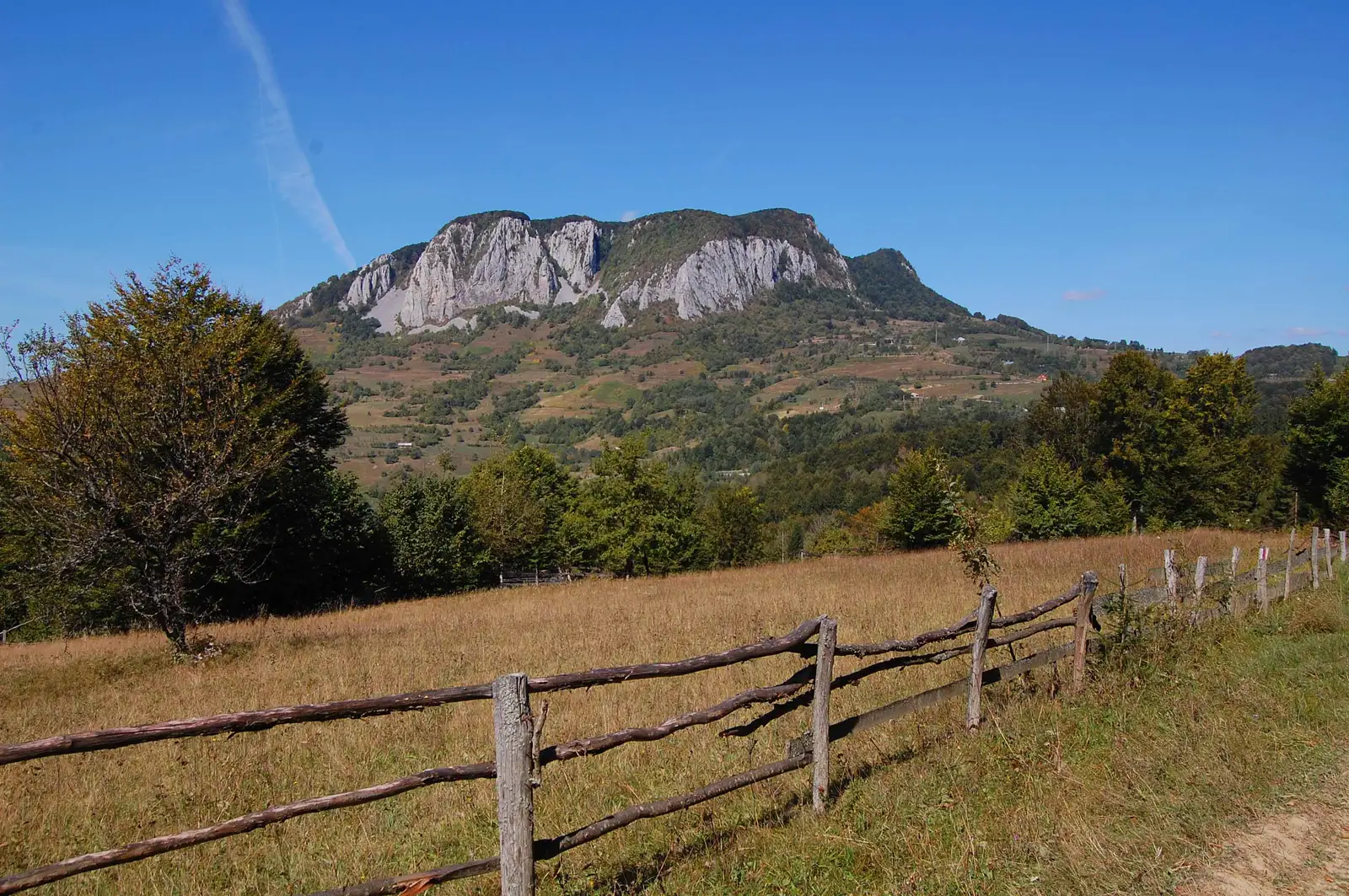 Este un traseu potrivit pentru a fi parcurs cu o bicicletă de munte. În acest caz este de preferat parcurgerea în direcția est-vest, datorită faptului că astfel beneficiem de mai multă coborâre. La circa 80 m mai jos de Pasul Bucium (Şaua Arsurilor), spre Abrud, din DN74 se desprinde spre vest un drum pietruit. Urmăm acest drum care urcă făcând întâi două-trei serpentine, apoi se înscrie pe direcția vest. Trecem prin fânațe și pâlcuri de pădure, pe lângă niște case aparținând cătunului Ruși, iar Vârful Pietriceaua (unde este înălțat un releu de comunicații) este ocolit prin stânga (sud). Aici este cel mai înalt punct al traseului, de unde începe o lungă și frumoasă coborâre lină, bineînțeles întreruptă de mici porțiuni drepte sau de urcări scurte. Din diverse puncte a traseului admirăm siluetele inconfundabile ale vârfului Bradișorului sau ale masivului Vulcan, spre care ne îndreptăm. După Vârful Pietriceaua și următorul vârf (pe care se află montat un hochstand - un observator de vânătoare) îl ocolim tot prin dreapta (sud). Lăsăm pe dreapta (nord) niște sălașe de vară, apoi drumul merge chiar pe marginea unei păduri, pentru a intra apoi într-o pădure serioasă, cu fagi mari pe Dealul Pietriceaua (Duşul). După o poiană frumoasă drumul ocolește următorul vârf împădurit, de data aceasta prin dreapta (nord), apoi iese din nou în zona de pășuni și fânațe. Trece pe lângă niște sălașe și se înscrie pe un traseu tăiat în culmea dealului, pe versantul sudic, o pășune presărată cu pini și ienuperi. Ne apropiem de pitorescul Vârf Bradișorul, un bulz de piatră la baza căruia sunt construite mai multe case și cabane. După o troiță folosim un drum care ocolește piatra prin dreapta (nord) trecând pe lângă gardurile caselor, apoi intră în pădure. Urmează mai multe poieni și porțiuni de pădure, intersecții de drumuri unde suntem atenți la marcaje. Pe o coastă (tot sudică) întâlnim din nou ienuperi și pini, de data aceasta mai compacți, apoi într-un mic luminiș o cruce de piatră veche. Urcăm în Vârful Runcului (împădurit) de unde cotim ușor dreapta (nord-vest). Traversăm o porțiune de pădure defrișată unde pădurea se reface și din păcate la un moment dat marcajul părăsește drumul bun de culme și apucă pe o potecă slab conturată care ocolește prin dreapta (nord) un vârf împădurit, prin tăieturi. Nu peste mult timp întâlnim din nou drumul care duce la un releu de comunicații aflat la vest de poziția noastră, drum pe care coborâm în Pasul Buceș-Vulcan, nu înainte de a admira silueta masivului Vulcan aflat în imediata apropiere.