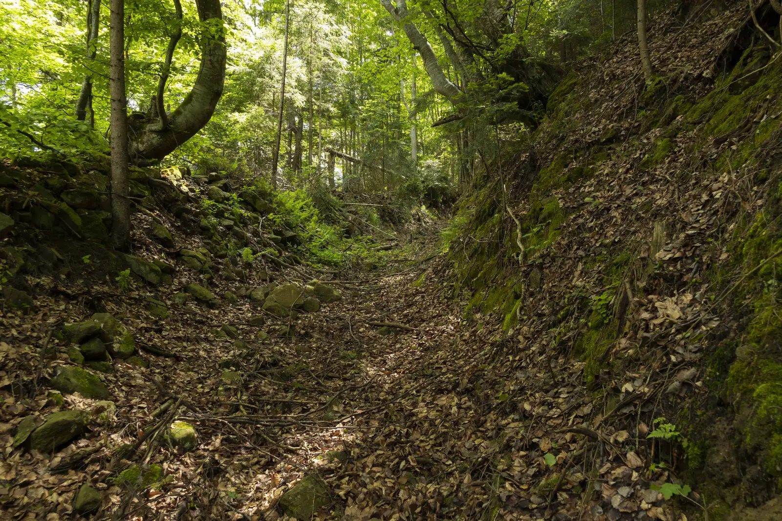 La scurt timp întâlnim traseele CR (traseul 22) - spre Tabăra Valea Uzului și BR (traseul 13) - traseul principal al Carpaților, pe segmentul care leagă munții Ciucului de zona înaltă din Munții Nemira. Continuăm spre sud, alături de BR, pe linia crestei, care pe această porţiune este destul de sinuoasă până la creasta "Füge" (Smochinului).
