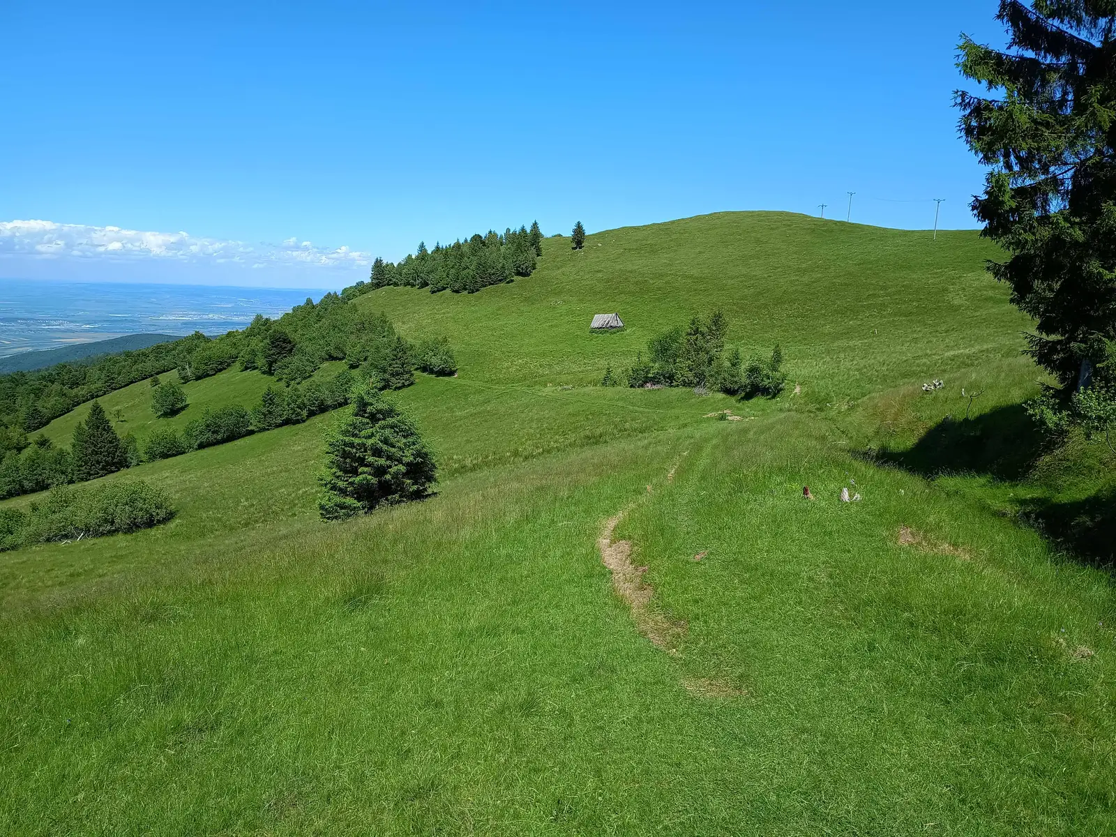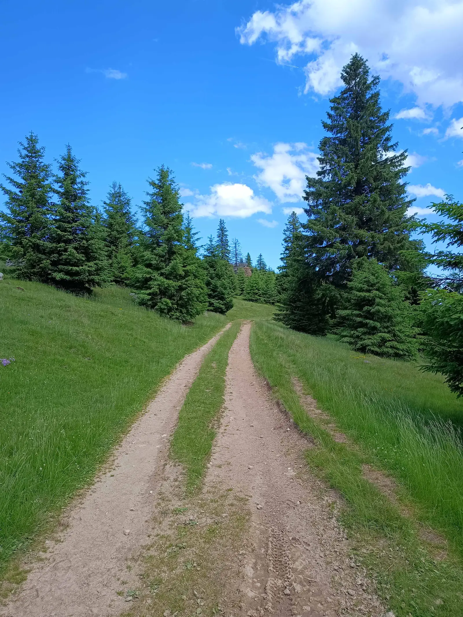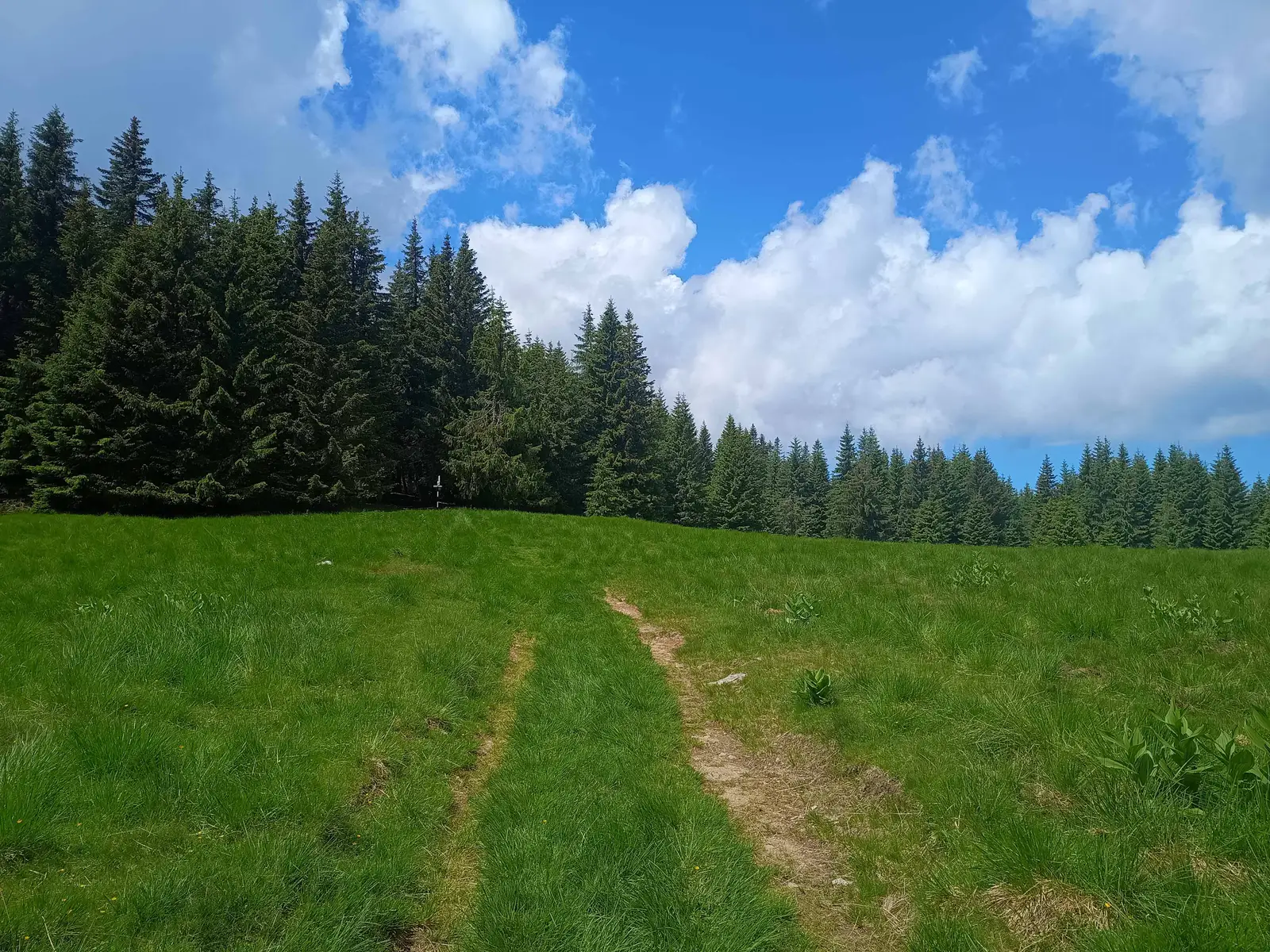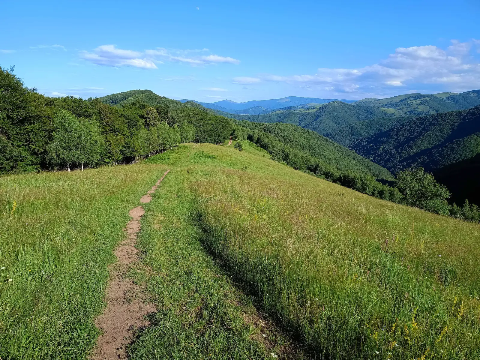 Din Răşinari folosim poteca ce urcă pe Dealul Coastei, care mai sus devine un drum ciclabil. Cu ceva efort urcăm în pitorescul Vârf Fragii, printre mesteceni. Peisajul este încântător. Urmează o coborâre abruptă, ocolirea Vârfului Plaiului prin dreapta (vest). După întâlnirea drumului ce urcă pe Valea Caselor apar primii molizi şi drumul devine mai lin, tăiat în munte pe partea stângă (est). Ne întâlnim cu drumul de culme pe care-l urmăm de acum încolo o vreme. După Poiana Tomnatec urmează o alternanţă de drum ciclabil cu drum plin de bolovani. Trecem succesiv prin poienile La Icoană, Lupilor, Onceşti şi Muncel. Din Muncel un drum bun de macadam ne coboară în Păltiniş, cea mai veche şi cea mai înaltă staţiune montană din ţară. La Păltiniş Arena părăsim asfaltul pe un drum pitoresc şi ne înscriem în coborâre pe Culmea Blidăriei până la DJ106J. Urcăm pe acest drum în serpentine 2,5km şi 190m D+ până la intersecţia cu DJ106A. De aici urcăm pe lângă 2 relee GSM în culmea Dealului Ganţa la un loc de popas amenajat de unde urmăm culmea spre SE. La un moment dat poteca coboară pe un picior şi e tăiată în mod inteligent în coasta muntelui pentru o coborâre lină deosebit de plăcută pentru ciclişti. Apoi din nou pe culme şi la fi nal prin fânaţe ajungem la Răşinari.