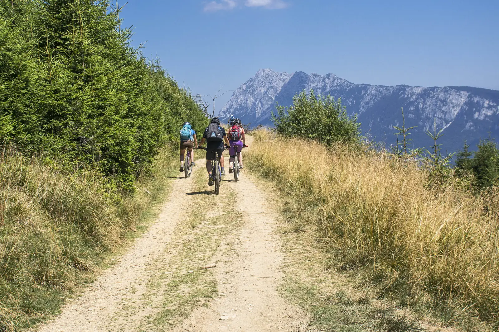 Încălzirea o facem urmând un drum forestier care șerpuiește între Valea lui Ecle și Culmea Căpitanului, prin pădure. Efortul ne este răsplătit de zările ce se deschid spre silueta Pietrei Craiului și munții Iezer-Păpușa. Drumul de culme ne urcă dincolo de două stâne spre Șaua Ţefeleica (1595 m). De aici mai avem de urcat aprox. 400 m D+ pe drumul de culme, până în Șaua Grădișteanu (1944 m), punct în care, fie lăsăm bicicletele, fie începem un push bike / carry bike de cca. 1,5 h (447 m D+) până pe Vf. Păpușa (2391 m). Din Șaua Grădișteanu avem și opțiunea de a străbate M. Găinațu Mare spre refugiul omonim.