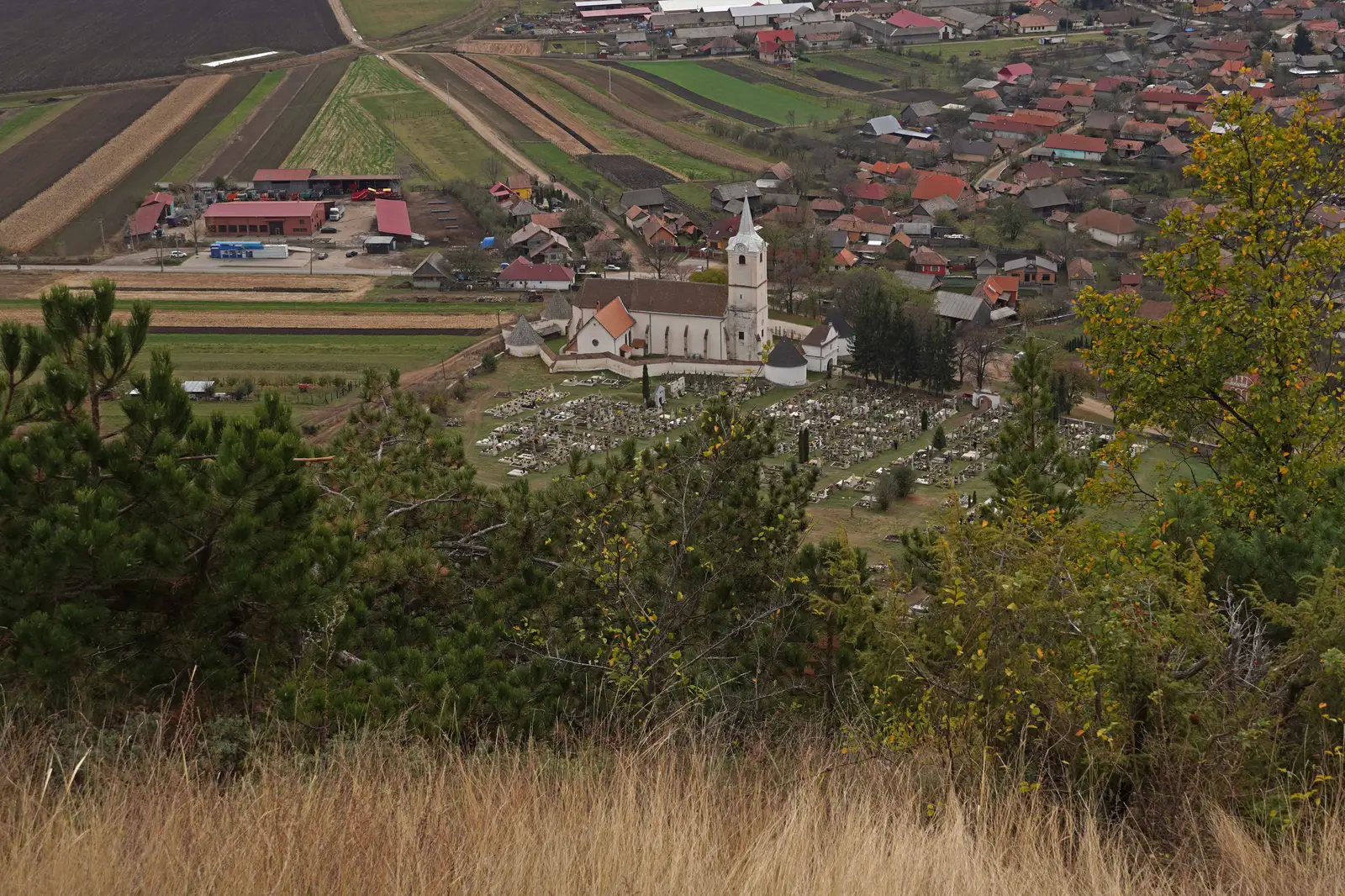 PR pornește de lângă biserica fortificată din Sânzieni, pe un drum pietruit care urcă pe platoul Capelei Sf. Ștefan, de unde avem o frumoasă priveliște spre Depr. Târgu Secuiesc (Berzunți). Capela în formă de trifoi şi turnul de clopot sub formă de pătrat se numără printre cele mai importante monumente din regiune. Ridicată pe Muntele Perko, numit Muntele Sfânt al Ţinutului Trei Scaune, capela are valoare de monument. (sursa). De la capelă poteca revine la biserica-cetate, pe o potecă frumoasă prin pădure.