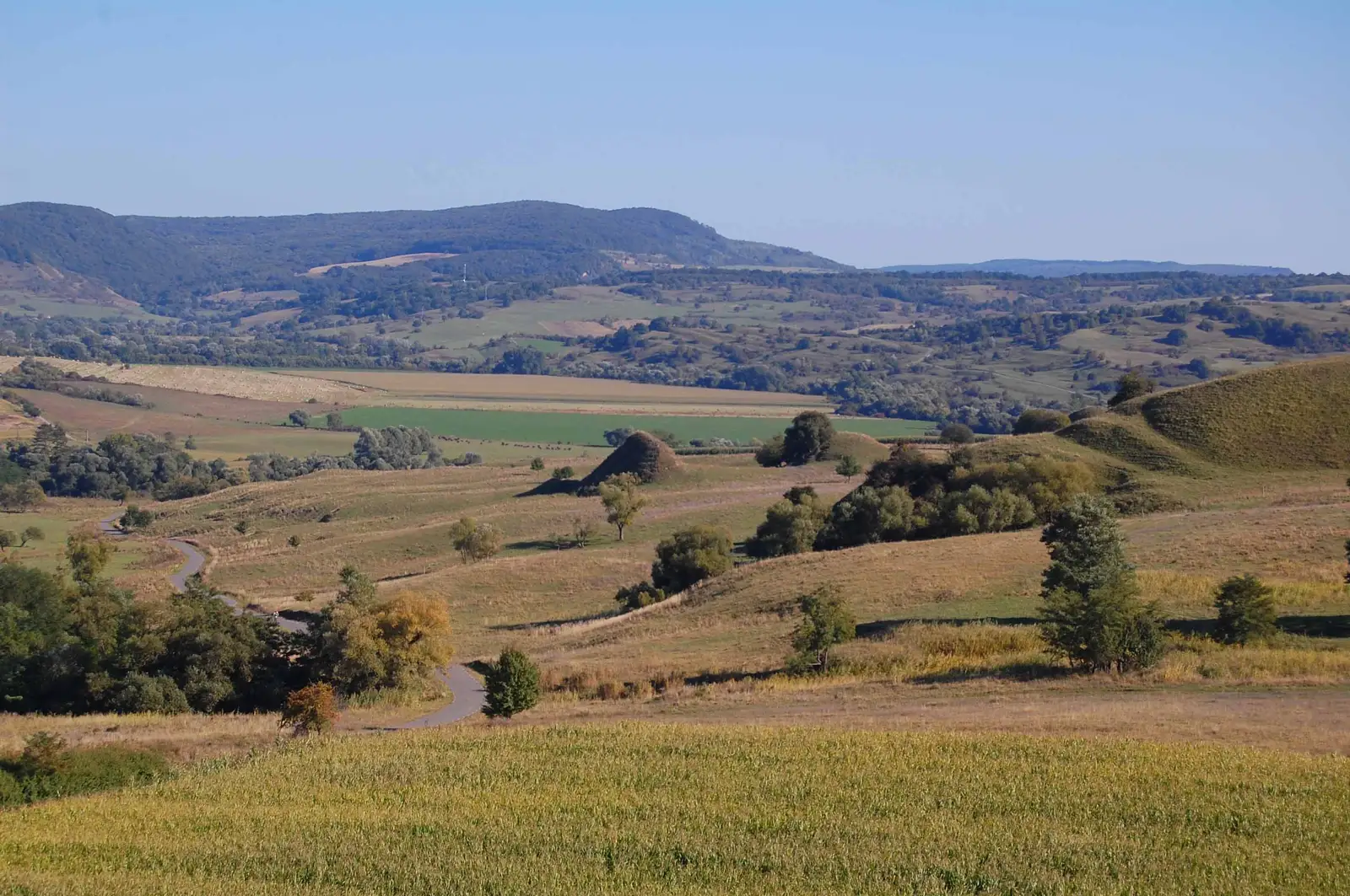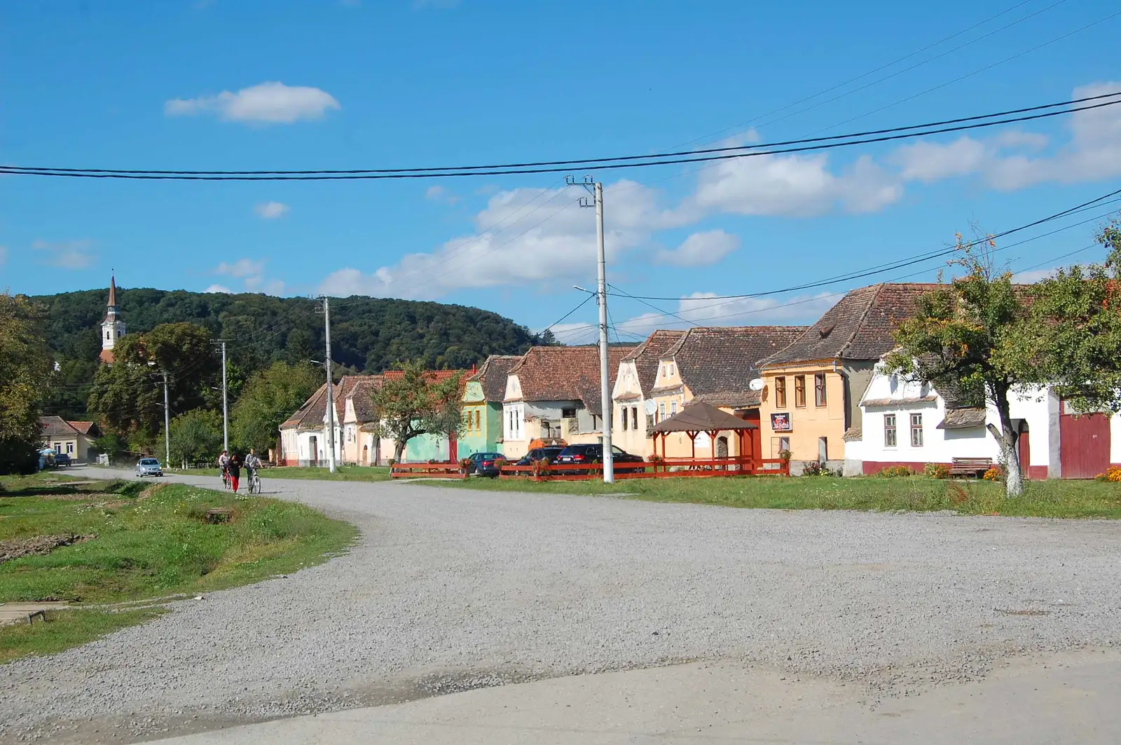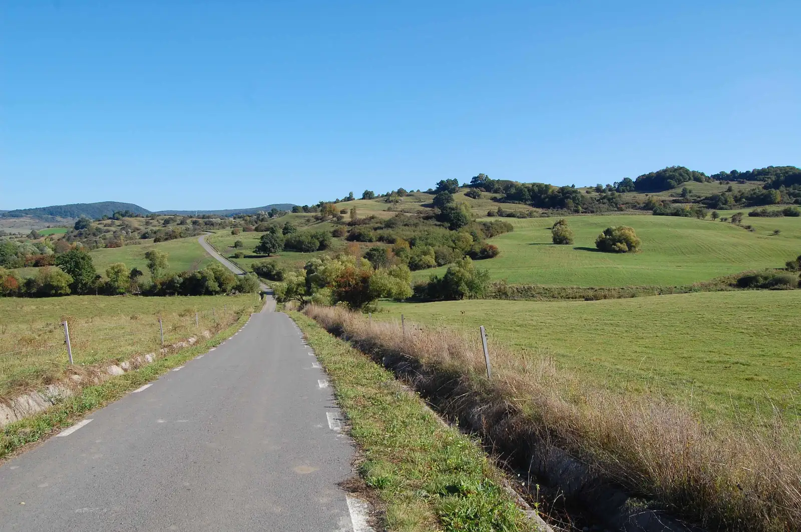 Traseul foloseşte unele din rutele concursului TBT Race. Urcăm pe deal, trecem pe la Cetatea Țărănească, apoi urmăm un parcurs prin pădure, în general aproape de culmea dealului. Ieşim la o intersecţie importantă de trasee. De aici intrăm pe poteca specială de biciclete, pietruită şi marcată cu BR, ce leagă Sighişoara de Viscri. Urmăm această potecă - pe care e o plăcere să pedalezi - cale de 5,7km preponderent prin pădure, apoi marcajul BR foloseşte un drum forestier pietruit 1,4 km, apoi din nou urmăm poteca aproape 6 km până la un indicator de lemn cu satele în care putem coborî. Aici sunt două variante - prima este să continu ăm spre Viscri încă 250m, apoi să coborâm în Meşendorf folosind un drum marcat cu CR. A doua variantă este să urmăm marcajele de concurs şi să ţinem culmea secundară (interfl uviul dintre Valea Daia şi Valea Morii) pentru o coborâre directă la Criţ. Atenţie, concursul coboară la Meşendorf, apoi urcă din nou pe culmea precizată, folosind o potecă în serpentine pietruită. Urmăm deci această potecă spre Criţ, însă pe ultima porţiune (la păşune) este neclară, aşa că folosim un drum de pământ şi coborâm la marginea satului Criţ. Străbatem localitatea, trecem dealul la Cloaşterf, de unde ne întoarcem la Saschiz pe DC53C asfaltat.