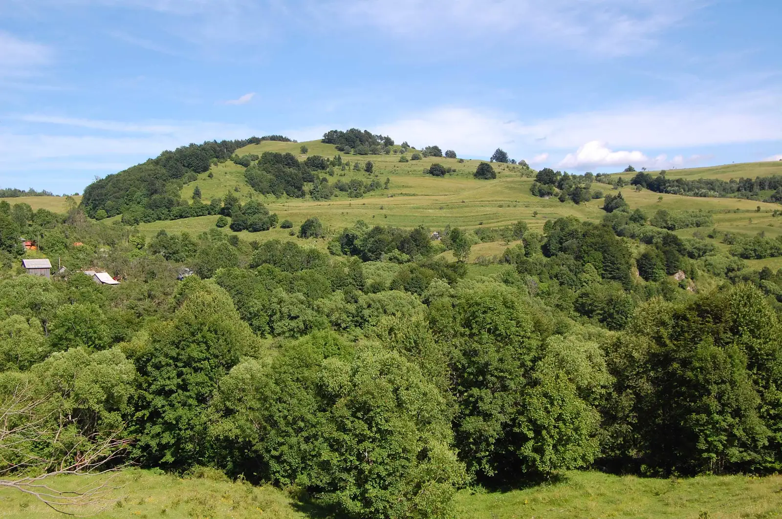 Ghidați de un indicator pătrundem în cimitirul din Bucium pe care-l străbatem în urcare pe o cărare. Ieșim apoi într-un drum care vine din dreapta și se înscrie pe coama dealului. Urmăm acest drum în urcare mai bine de 1 km și poposim la … Popasul Fefeleaga. La 400 m mai sus întâlnim drumul asfaltat care vine din Bucium, pe care urcăm până la finalul lui doar 50m. După încă 500 m întâlnim indicatorul pentru traseul Circuitul Detunatei Goale, cu marcaj PR. Aici cotim ușor stânga și împreună cu ramura din stânga a circuitului intrăm în pădure, iar într-o poiană un stâlp cu marcaj ne anunță că până pe Detunata Goală este un urcuș de numai 10 minute (pe marcaj PR). Noi continuăm însă în aceeași direcție, apoi cotim ușor stânga (nord). Spre dreapta observăm două vârfuri gemene, împădurite, un excelent punct de reper. Urmează un frumos parcurs fără diferențe mari de nivel prin poieni pitorești întrerupte de mici pâlcuri de pădure folosind drumurile din zonă. După mai bine de 2 km parcurși în această manieră întâlnim un drum mai serios care vine dinspre dreapta (est) și schimbăm direcția spre stânga (vest). În față “admirăm” cariera de la Roșia Poieni iar spre dreapta celebrul lac de decantare Valea Şesii cu biserica înecată. Un indicator ne abate de la direcția vest și ne îndeamnă să coborâm pe un drumeag tăiat în coasta muntelui în satul Poiana, unde găsim apă potabilă. Urmează cătunul Muntari, pe ulițele căruia începem urcușul care se va termina în drumul asfaltat ce vine din Valea Corna, unde se află un stâlp indicator cu săgeți. Travesăm acest drum păstrând direcția și coborâm pe un drumeag la Tăul Mare, împreună cu traseul PR. Înconjurăm tăul pe drum prin dreapta (nord și vest), trecem stăvilarul acestuia (aflat în colțul din sud-vest) și imediat cotim dreapta angajându-ne din nou în coborâre pe un drumeag, printr-o zonă cu vegetație bogată. Traseul PR ne părăsește vremelnic spre dreapta, însă îl vom reîntâlni mai jos, după ce trecem pe lângă primele case din Roșia Montană. Suntem deci pe o uliță a localității, care coboară în drumul asfaltat. Pe acest drum în aproximativ 350 m ajungem în Piața Centrală, loc din care pleacă mai multe trasee turistice.