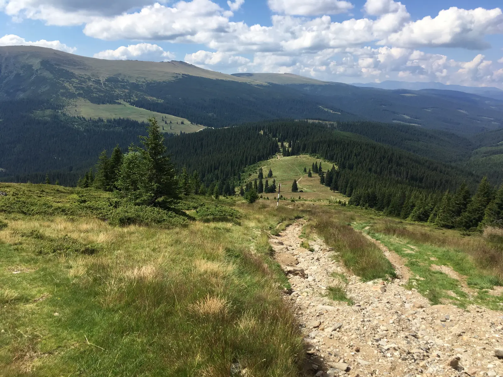Noi cotim la dreapta și urcăm destul de aprig, prin jnepeniș până pe Vf. Cindrel, marcat cu troițe, cel mai înalt din masiv, deasupra fermecătorului lac glaciar Iezerul Mare, aflat într-o superbă căldare sub vârf, supranumit „marea de smarald”, datorită culorii.