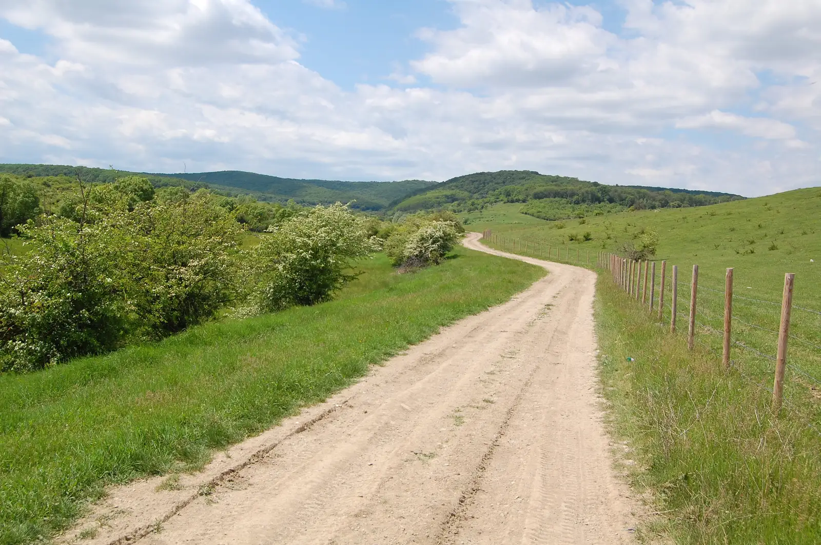 Ieşim din Sibiu prin cartierul Guşteriţa, urcăm la crucea amplasată în imediata apropiere a turnului deobservaţie, loc din care se vede tot oraşul. Trecem pe lângă 4 relee gsm, apoi coborâm în 2 serpentine şi urcăm din nou la adăpostul de câini. Urcăm în coasta ealului printre peri sălbatici şi ieşim într-un drum forestier. Schimbăm complet direcţia, mergem pe drum forestier spre Dealul la Tablă (aproximativ pe culme, prin pădure). Din locul de popas “La masă” cotim uşor dreapta pe un drum forestier ce traversează nişte porţiuni defrişate, apoi iese din pădure deasupra văii Daia. Coborâm în satul omonim de-a lungul văii, pe lângă lacurile fermei Trans Agape. Apoi ne deplasăm uşor la Caşolţ pe un drum asfaltat, iar după străbaterea localităţii, la un izvor amenajat părăsim drumul ce face dreapta şi trecem Hârtibaciul pe un pod. Urcăm pe deal şi intrăm în pădure. În lipsa marcajelor menţinem drumul de culme, cu marcaj forestier. Întâlnim un drum forestier mai bun, ce vine din Valea Treancului, apoi ieşim la păşunea satului Veştem, în care coborâm pe un drum nisipos. Mergem la Mohu pe un drum frumos pe lângă râu, apoi la Bungard pe un drum îngust, asfaltat. Aici urcăm pe deal, mai sus de biserică şi pe un drum de pământ ieşim într-o serpentină a DJ106. În doar 1,2 km întâlnim pista de biciclete din zona