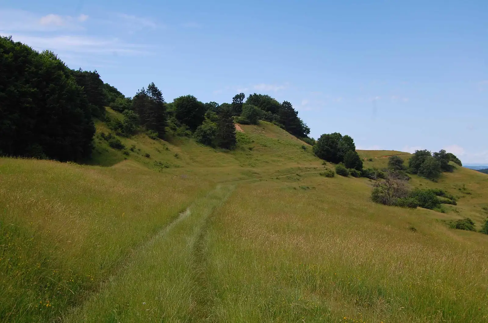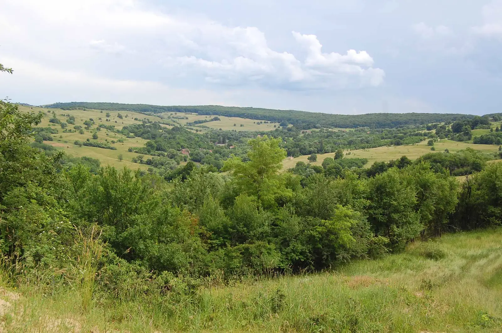 Urcăm pe lângă detaşamentul de pompieri printr-o zonă de case şi cabane, apoi prin pădure de-a lungul Văii Dracului. Ieşim într-o frumoasă poiană cu sălaşe de vară, apoi urcăm în culmea dealului, pe care o părăsim după o vreme spre stânga, pe un drum înierbat, cu peisaje frumoase, pe deasupra satului Şapartoc. Intrăm pe o potecă special construită pentru biciclete, marcată cu BR, care la început coboară în serpentine prin pădure, apoi urmează un parcurs relativ drept. Ieşim într-o păşune cu copaci mari şi rari, asemanănătoare cu platoul Breite, apoi urmărim culmea şi înconjurăm circular valea Hula. Din cel mai înalt punct, unde se afl ă un rezervor de apă dezafectat (dealul Birom) urmăm săgeata BA şi coborâm pe un drum de pământ în satul Daia. Traseul face un mic ocol pe uliţele satului pentru a trece pe la Biserica Evanghelică, apoi folosind drumurile de macadam DC56 şi DC56A ajungem rapid în satul vecin Vulcan. Traversăm localitatea, apoi o porţiune de pădure şi ajungem „La Trei Drumuri” (care sunt de fapt 5). În 250 m urmăm spre stânga o potecă specială pentru biciclete (marcaj CA). Coborâm mai bine de 8 km pe un single-trail cu pantă moderată, serpentine şi mici amenajări. Apoi strazile Lunca Poştei, Axente Sever şi George Coşbuc ne duc rapid în centrul oraşului.