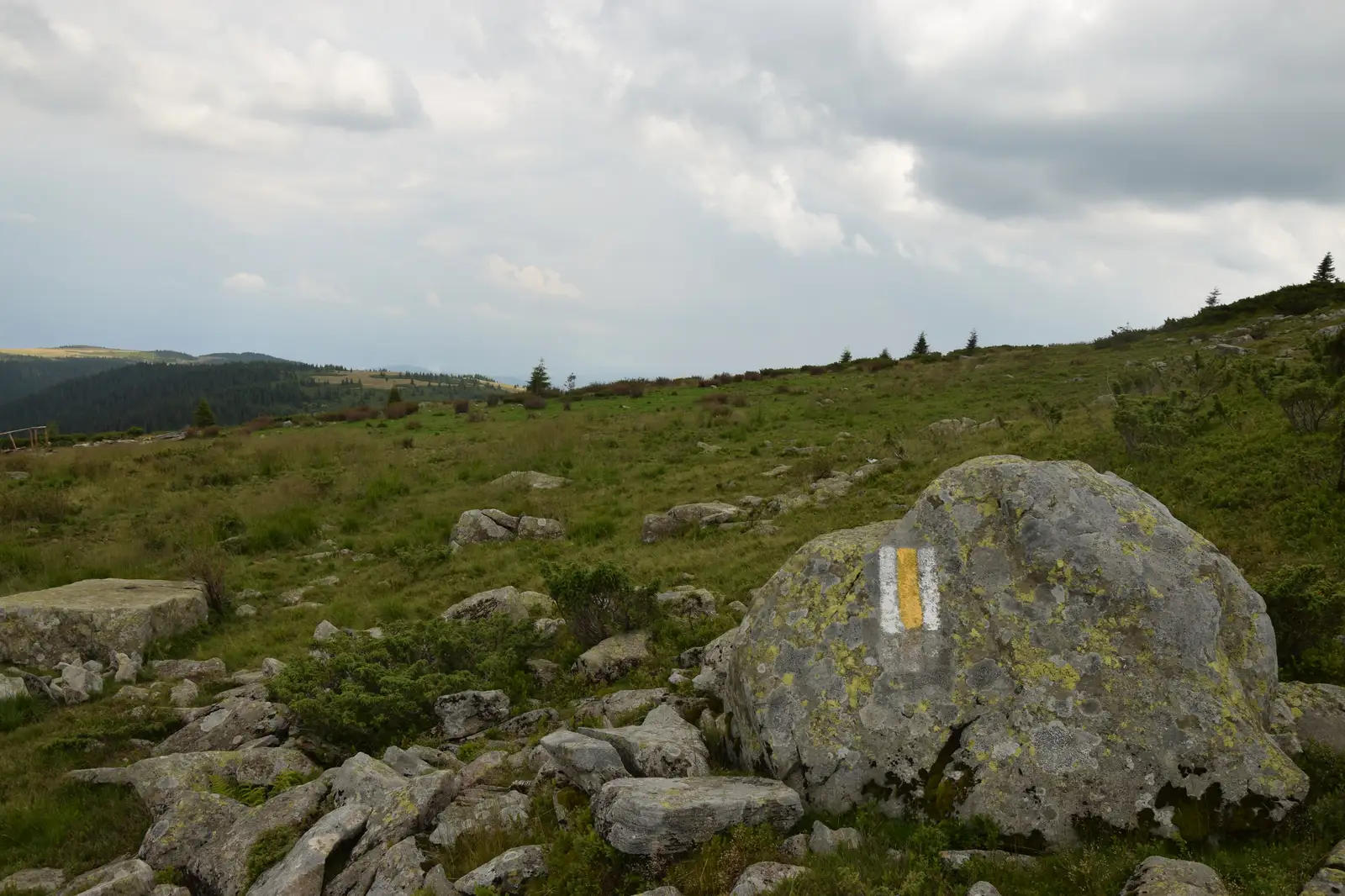 Reveniți sub vârf, luăm direcția SE, spre Poiana Stânișoara, depășim izvoarele văii Moara Dracului și Drăganului, apoi intersectăm izvorul Briţei. După ce întâlnim un pâlc de ienuperi greu de trecut, ieșim la intersecția cu magistrala BA Cabana Vlădeasa - Padiș (traseul 1). Suntem lângă panoul informativ de lângă Piatra Tâlharului, o stâncă izolată foarte pitorească ce contrastează puternic cu netezimea platourilor din jur.