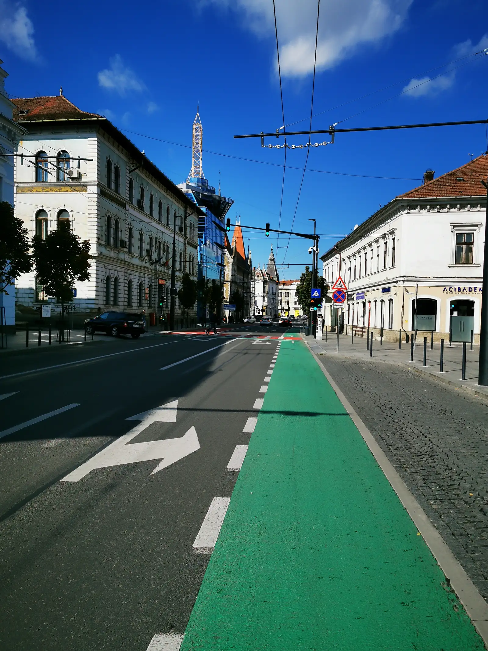 De aici pedalăm spre Cartierul Gheorgheni ca să ajungem la lacurile de acolo. După ce pedalăm pe strada 21 Decembrie şi pe strada Ferdinand şi Horea ajungem la Gara CFR (clădire monument). De aici urcăm pe Dealul Cetăţuia unde sunt clădirile fostei cazarme austriece şi un punct de belvedere de unde avem o privelişte asupra oraşului. De aici coborâm şi prin Cartierul Grigorescu ajungem înapoi la Parcul Rozelor.