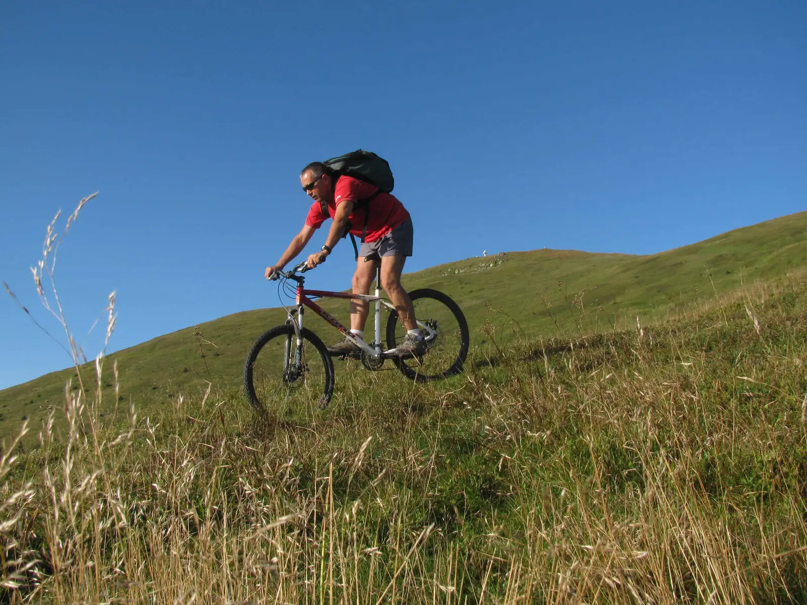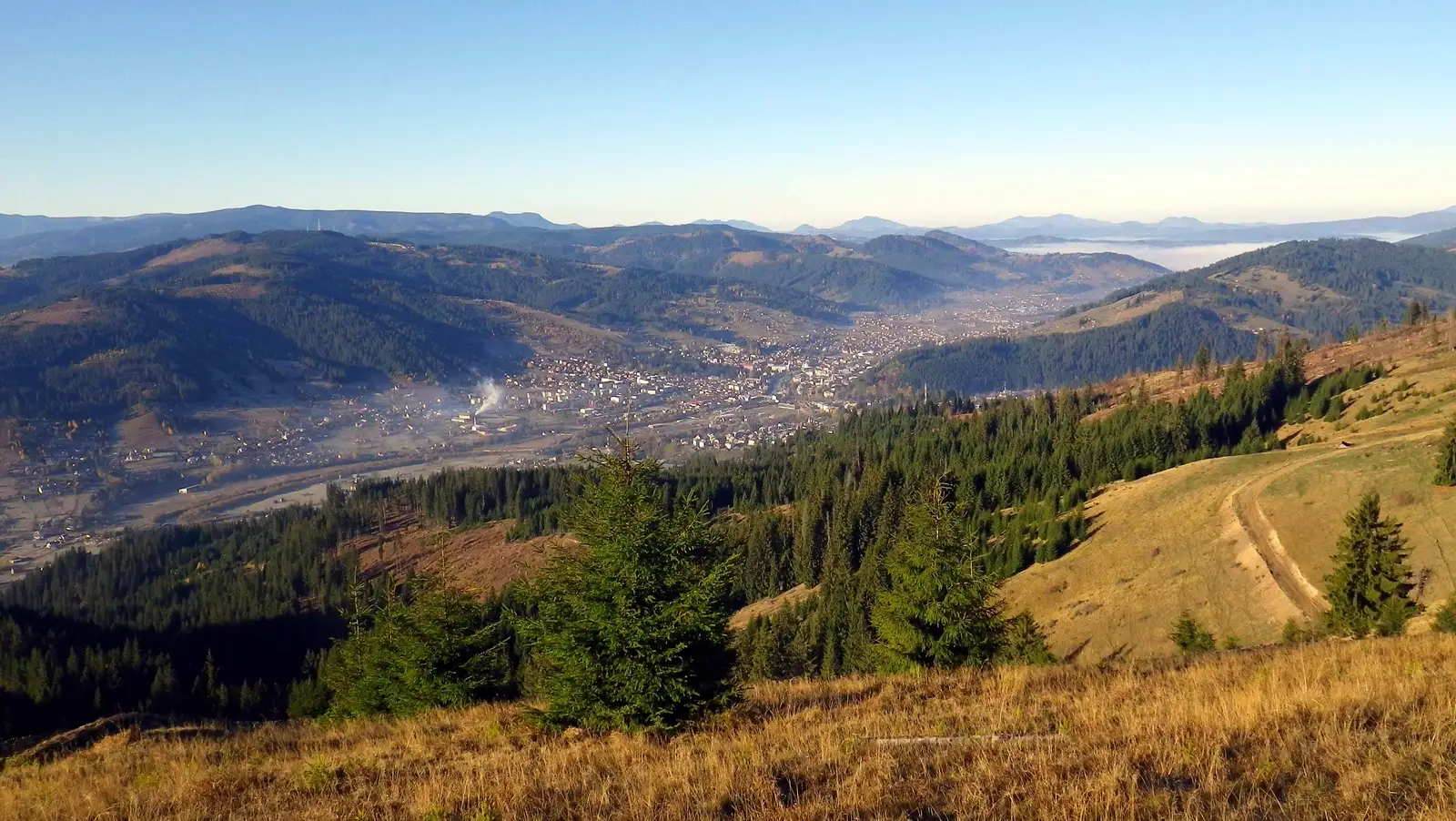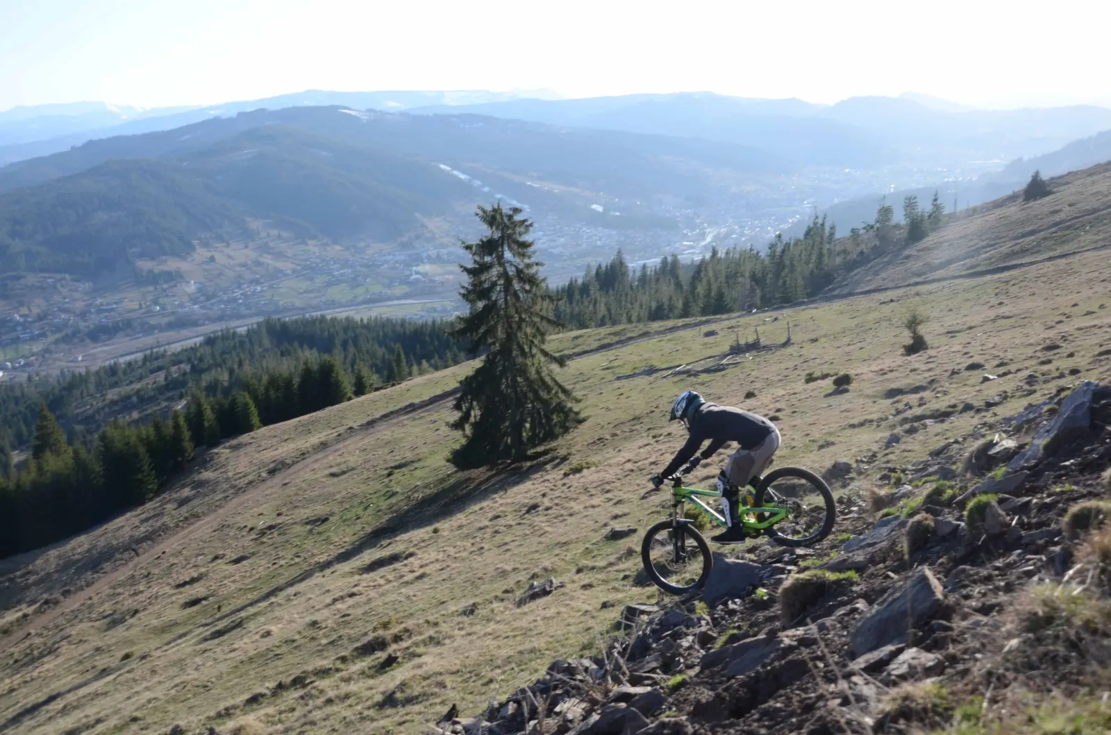 Traseul de față propune un circuit cicloturistic pe culmile S-SV ale Giumalăului, pornind pe varianta ocolitoare a Staţiunii Vatra Dornei, care urmărește malul stâng al Bistriţei. Primul segment urcă domol spre satul Rusca, trecând de o mănăstire, apoi din satul Rusca, urmăm drumul care însoţeşte P. Rusca spre Cabana Giumalău, marcat cu Triunghi Roșu.