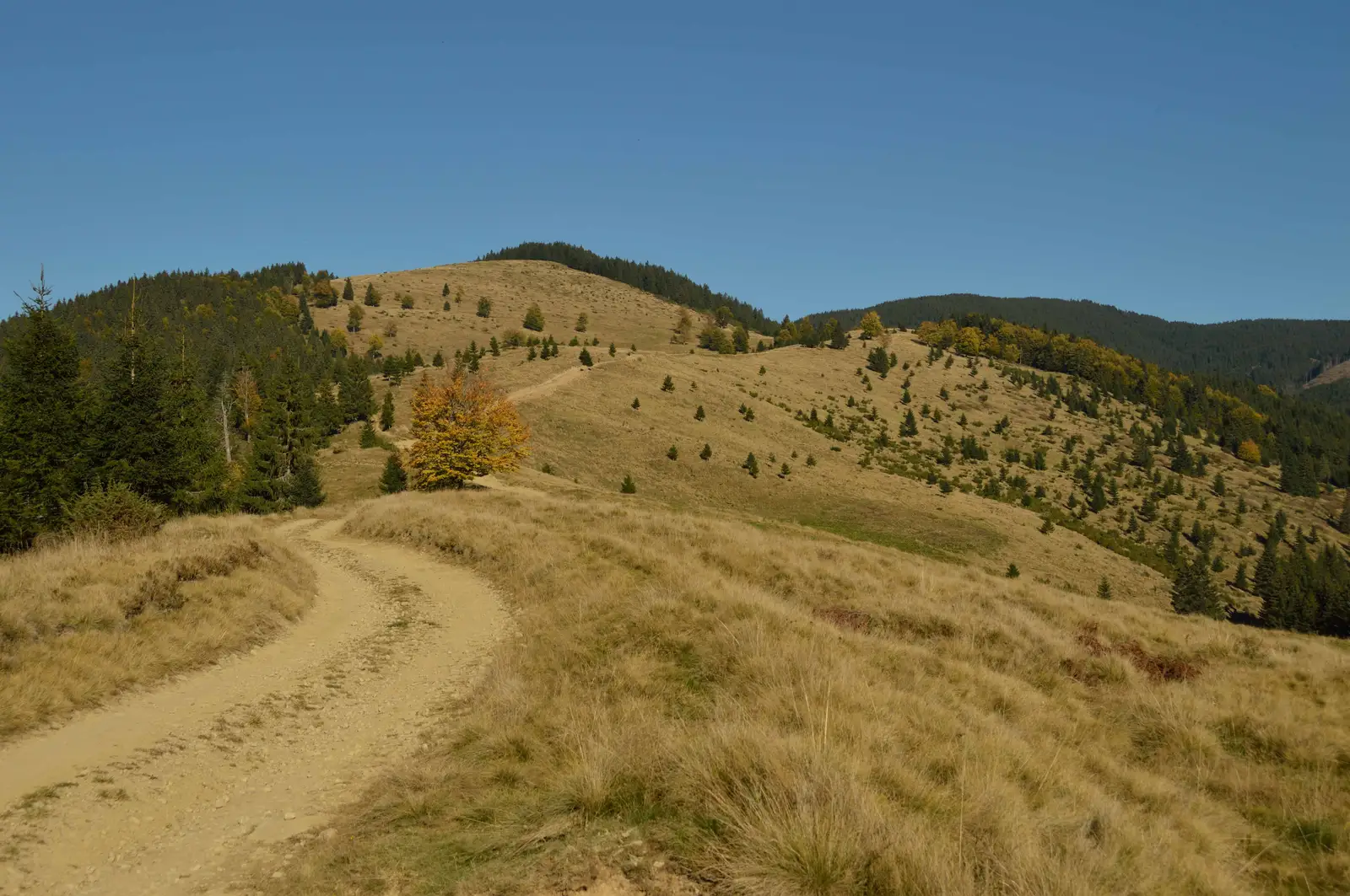 Marcaj vechi şi deteriorat de la startul traseului până sub Vârful Tisbotic.