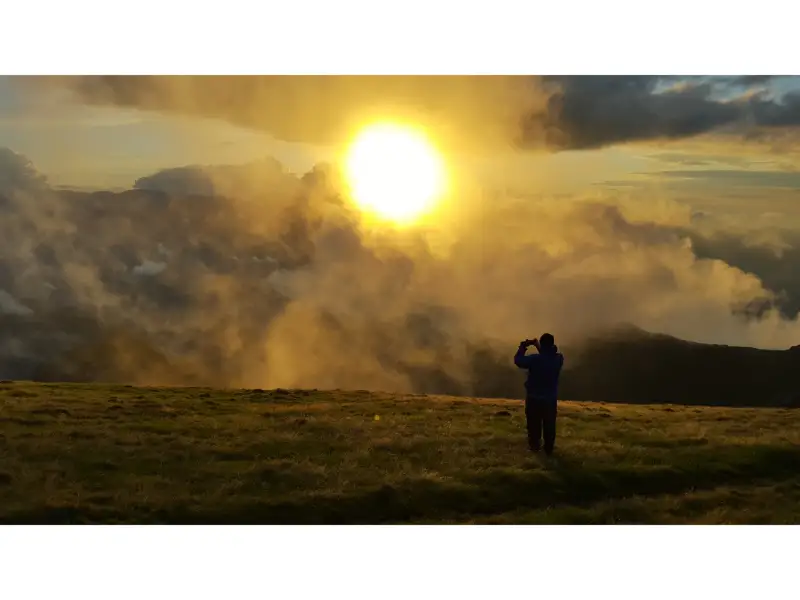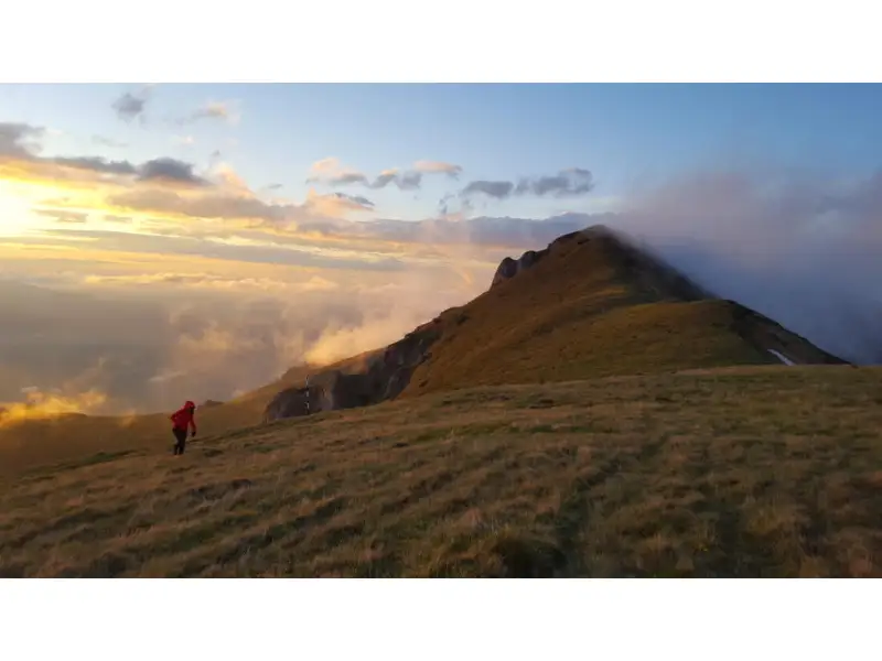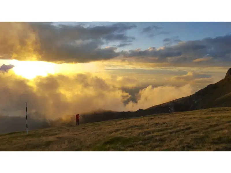Vedem Piatra Craiului, in departare, in spatele Craiului, vedem Muntii Fagaras, iar spre nord vedem Postavaru. Mai facem o tura lejera, pana pe Varful Tiganesti si revenim la corturi. Peste Postavaru s-a asezat o mare de nori, iar dinspre Valea Malaiesti se ridica norii, De acum incolo toata lumea cazata la refugiu sau in corturi sta afara, cu telefonul sau aparatul foto in mana, caci apusul este epic. Cu totii exclamam de bucurie si tragem concluzia ca rar vom avea ocazia sa vedem un apus ca cel din Culmea Tiganesti.