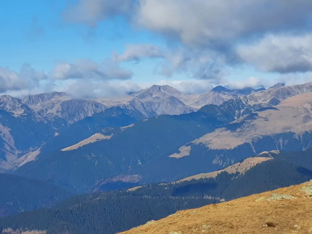 Din creasta am putut admira Muntii Bucegi, Piatra Craiului si Fagarasul. Pana aproape de Varful Batrana am avut in spate privelistea catre Trapzeul Vistea-Moldoveanu. De la Vf. Batrana am coborat pe Plaiul cu Patru, si am lasat pentru alta data varful Papusa. A fost o drumetie lejera, cu toate ingredientele pentru o tura faina, si am filmat suficient cat sa iasa de un episod din seria de filme Vlog pe Munte.
