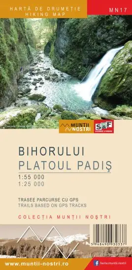 Harta Munţilor Bihorului - Platoul Padiș poartă indicativul MN17, ceea ce-nseamnă că este al şaptesprezecelea număr din colecţia „Munţii Noştri”.