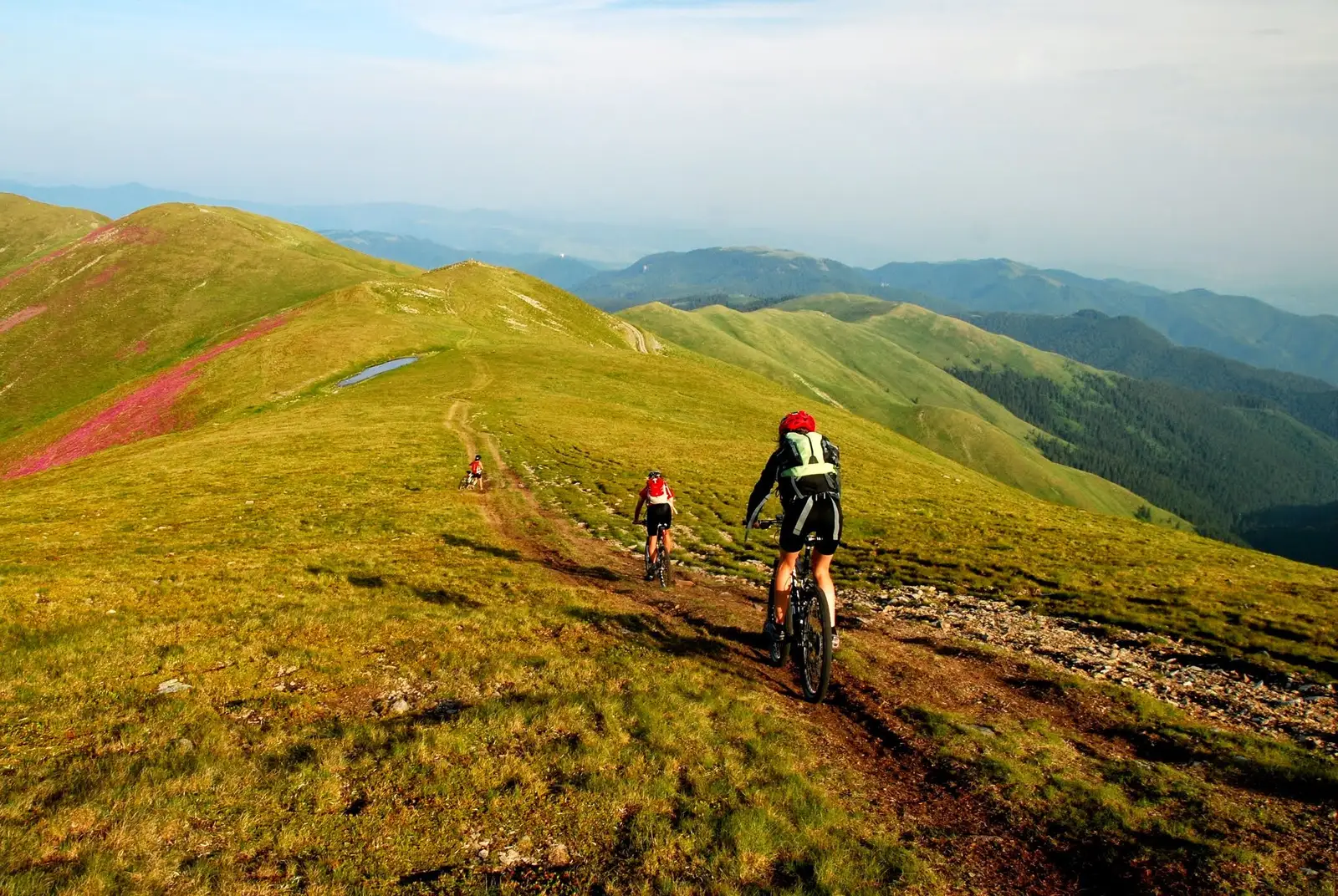 După ce revenim în Curmătura Tâncava începem parcursul pe un single-trail tenic pe alocuri, care coboară spre dreapta, pe sub vârfurile Frumuşelul, Vaca, Rătuneiul. Ajungem sub Vf. Românescu, în care M. Românescu se uneşte cu Marginea Domnească. De aici ținem creasta matematică spre Plaiul Gărgăunele, depășind niște stâne.