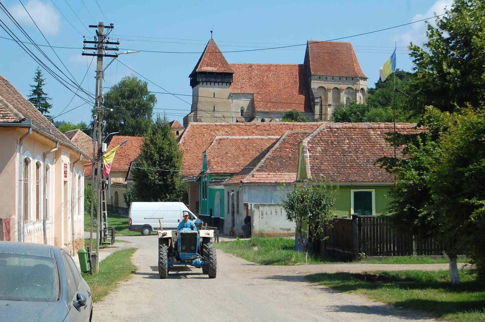 Din Biertan ne deplasăm spre sud pe un drum asfaltat 1,4 km, apoi o luăm spre stânga pe un drum de pământ care traversează dealul şi iese în drumul forestier Valea Caselor ce merge la Copşa Mare. Aici vizităm Biserica Fortifi cată ce domină împrejurimile, apoi ne înscriem din nou în urcare pe un drum de pământ. Trecem un pas fals, după care facem o mică serpentină spre dreapta, mai lejeră pentru bicicletă (Via Transilvanica urcă direct pe o potecă abruptă), apoi, după un mic platou, urmează o coborâre abruptă în serpentine ce necesită atenţie. La un loc de popas construit din lemn masiv ne despărţim de Via Transilvanica, care trece prin vale apoi peste deal, şi o luăm uşor la stânga pe drumul de-a lungul văii Lapşa, care după mai bine de 3 km iese în DJ143 asfaltat. Îl urmăm până în