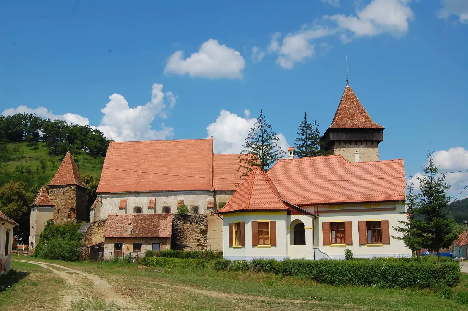 localitatea Roandola, pe care o vizităm dacă dorim. Ne întoarcem la marginea localităţii şi cu ajutorul unui drum de pământ, foarte rar marcat cu CA, care întâi strabate nişte culturi agricole apoi o luncă, apoi pădurea, trecem dealul în localitatea Valchid. De aici până la Copşa Mare folosim DC24 asfaltat. La marginea localităţii urcăm spre dreapta pe un drum de pământ care iese din nou în drumul asfaltat. Mergem pe acesta circa 700 m, după care urcăm (alături de Via Transilvanica) pe dealul din stânga, de unde folosind un drum panoramic coborâm în Biertan.