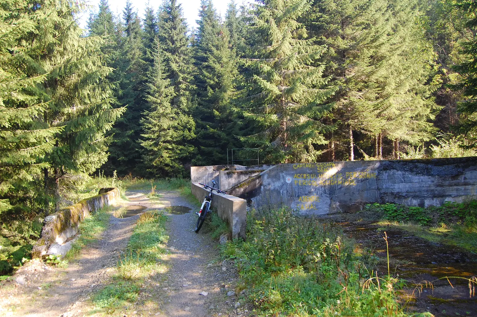 Până la captarea de apă Groapa Seacă II mergem alături de traseele 21 TA şi 22 PG. Aici cotim puternic dreapta (spre sud) şi urmărim un drum construit de-a lungul unui canal acoperit cu dale de beton. Trecem pe lângă captarea Groapa Seacă I, apoi ieşim în DN7A lângă Mănăstirea Jieţ, amplasată chiar la drum. De aici revenim la cabană pe DN7A în 2,2 km.