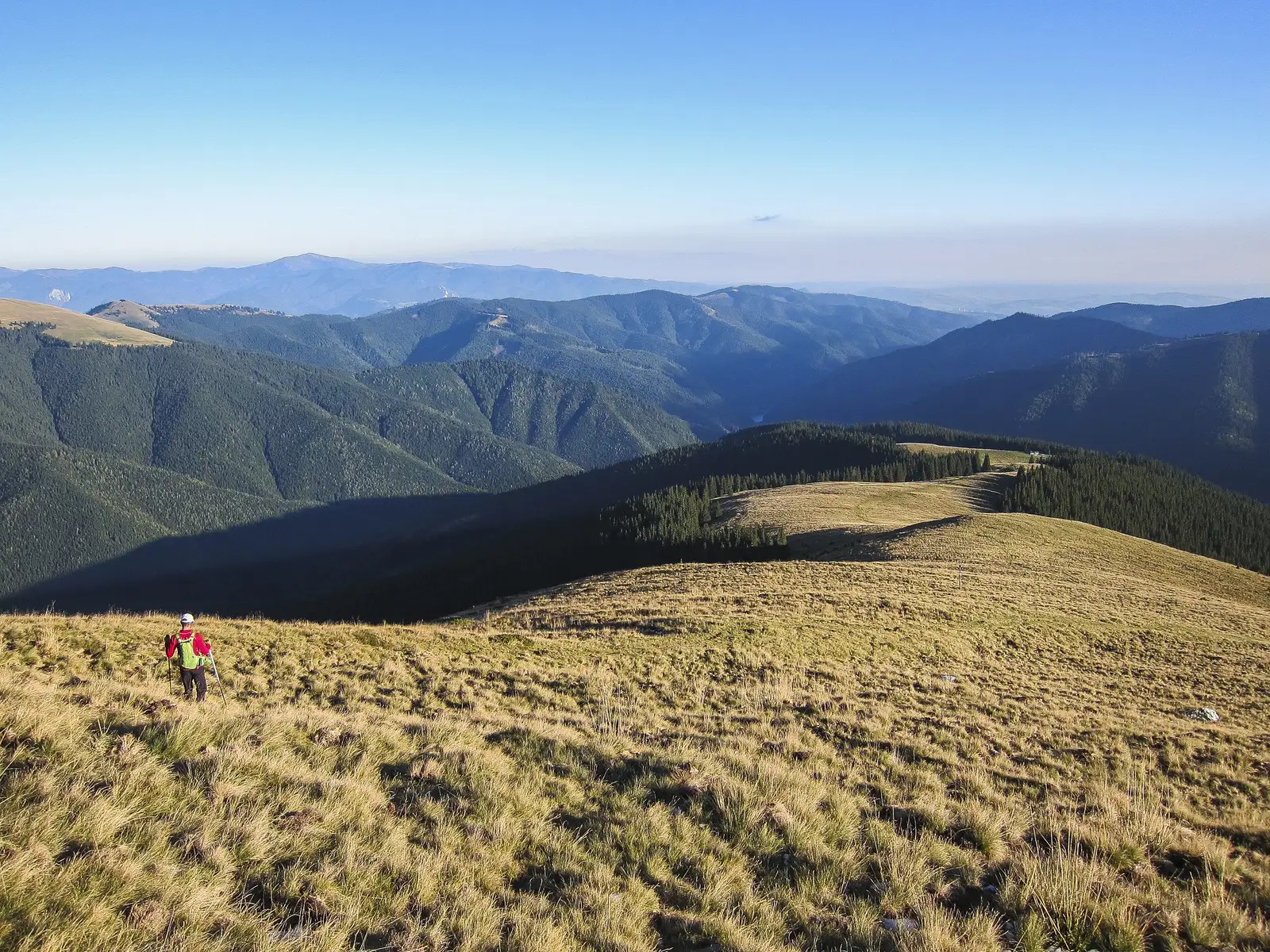 TR părăsește drumul spre vest, lăsând în față marcajul TG și urcă pieptiș pe culme, pe un drum de TAF care ne conduce la stânele Plaiul lui Pătru, într-o poiană largă (1600 m). De aici continuăm matematic pe culme, ajungem la golul alpin, unde în condiții de vizibilitate scăzută, ne ghidăm după stâlpi de marcaj.