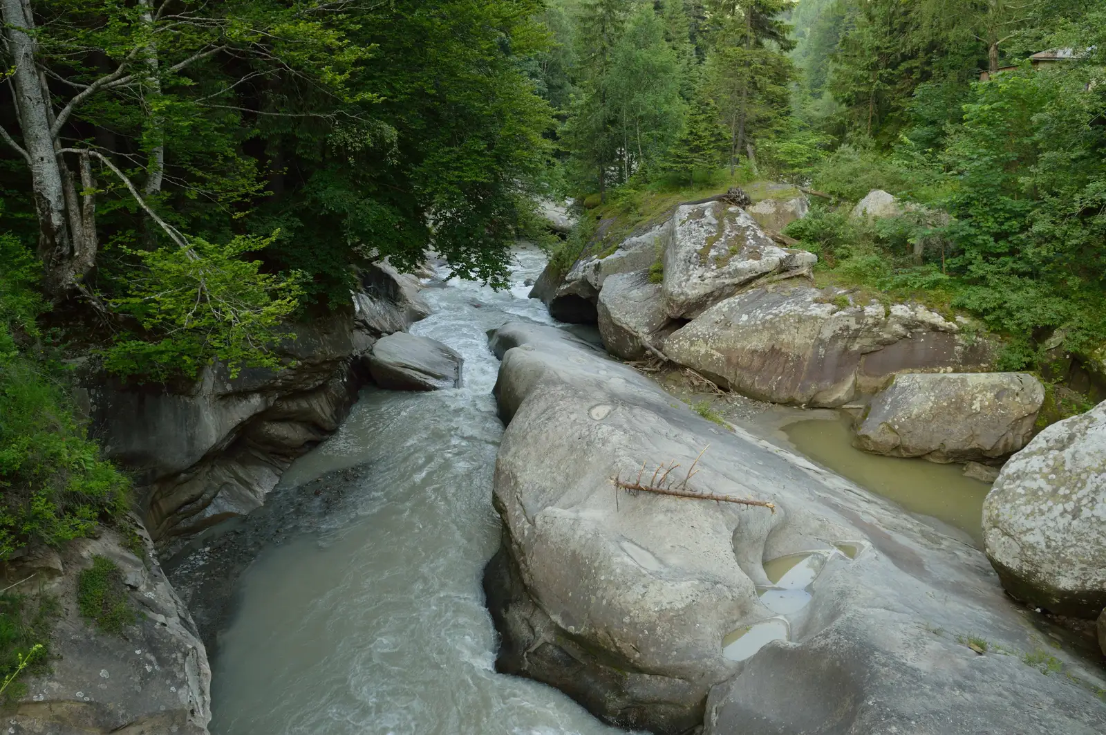 Traseul porneşte de la podul de peste râul Zăbala, aflat la câţiva metri amonte de stâncile săpate de apă cunoscute sub denumirea de Căldările Zăbalei. Urmează drumul forestier bifurcat la stânga, depăşeşte clădirile unor unităţi silvice şi pătrunde în bazinul văii Zârna Mică, folosind în exclusivitate versantul stâng al acesteia, până la interceptarea Pârâul Verde (cale de 4,7 kilometri). De la traversarea albiei continuă 2,6 kilometri pe direcţia generală est şi ajunge în Şaua Furu, în apropierea Stânei lui Coman (aflată în paragină). Din acest loc, continuă 1,3 kilometri pe curbă de nivel prin poiana de sub Vârful Furu Mare şi intră în pădure prin stânga unei stâne. De la intrarea în pădure, pentru ultimii 10,4 kilometri, utilizează drumuri forestiere şi apoi un drum comunal pietruit pentru a ajunge în staţia de autobuz aflată la intrarea sudică a comunei Vintileasca.