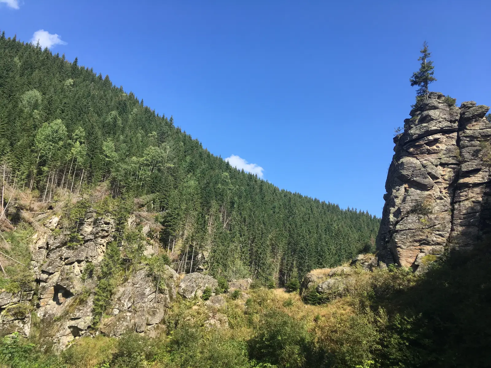 TA urcă susținut prin pădure, apoi printre jnepeni până în Şaua Cânaia (2025 m), unde întâlnim traseul principal de creastă BR (traseul 1). Din șa, putem coborî pe TA (traseul 6) la Cabana Refugiul Cânaia, bine întreținut, unde putem poposi peste noapte.