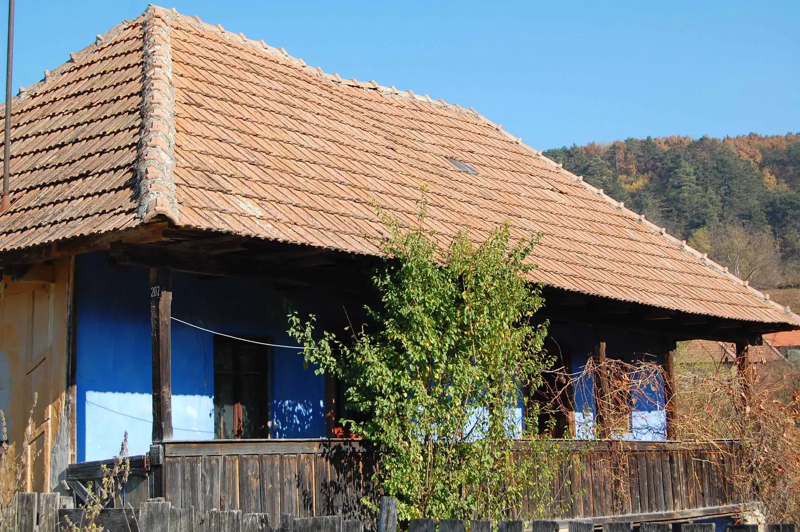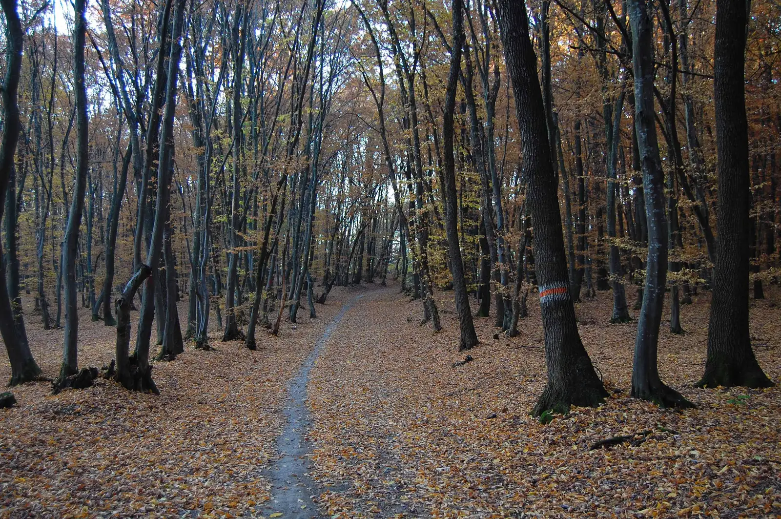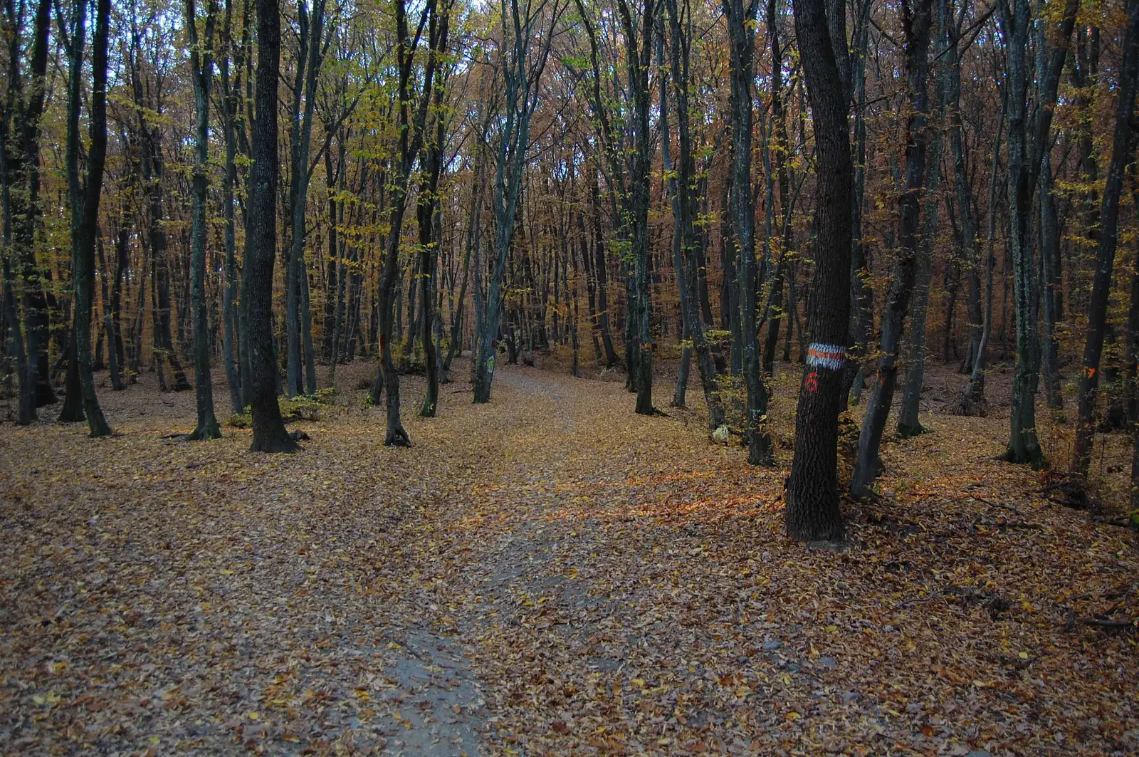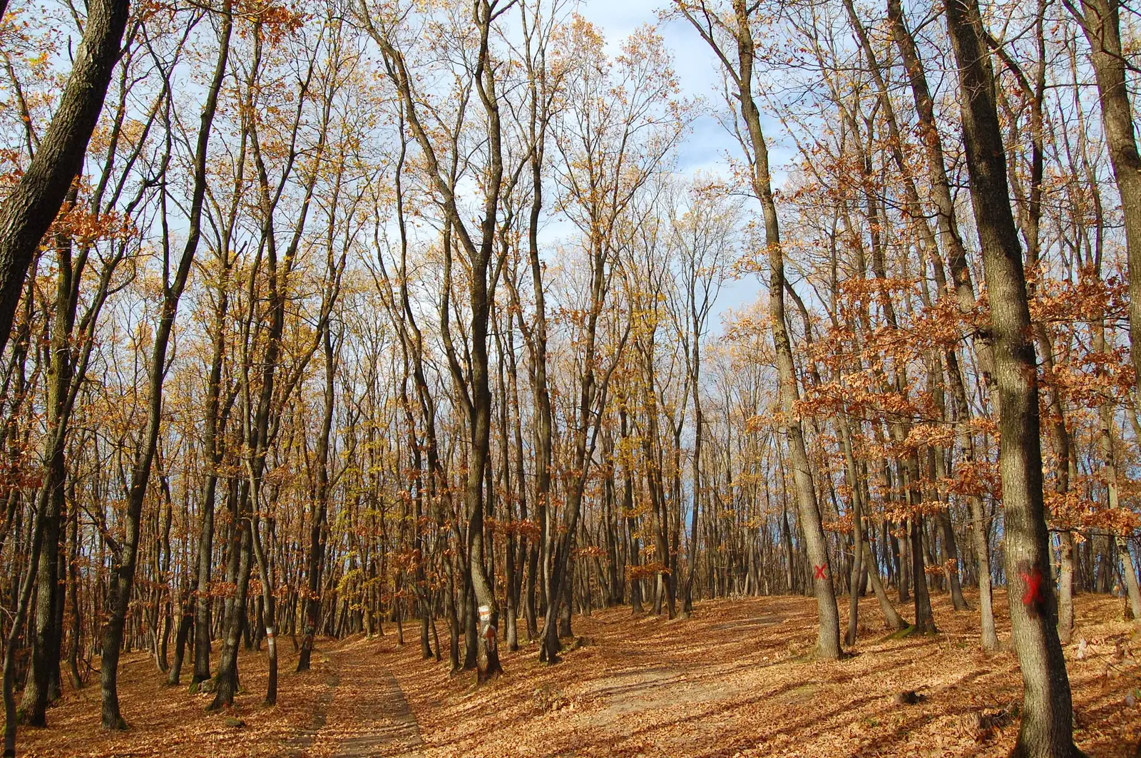 Aici lăsăm la stânga poteca de legătură cu BR, marcată BA (traseul 15), ținem drumul principal pe lângă pensiune, apoi urcăm pe un drumeag la stânga, în pădure, aproape de un pârâu, traversăm valea și ieșim în culmea dealului, unde regăsim marcajele BR.