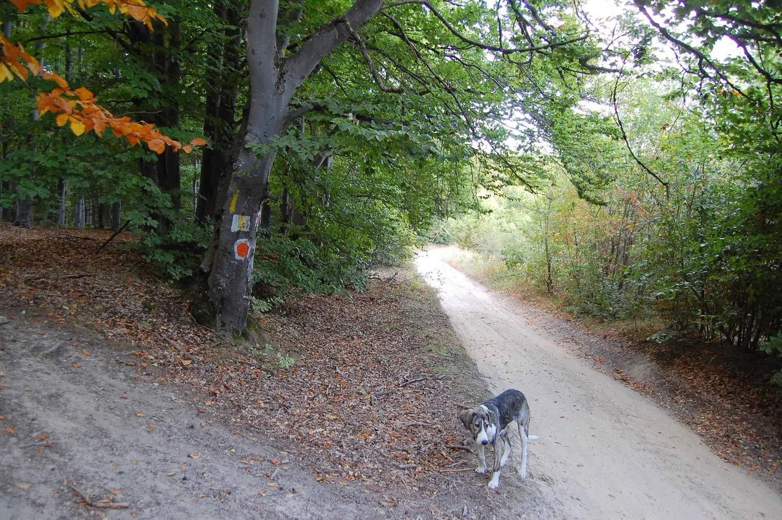 Este oarecum un traseu de legătură între traseele BR și BA. Traseul se desfășoară în cea mai mare parte pe drum, la liziera pădurii, aproape de interfluviul dintre Someș și Mureș. După ce s-a întâlnit cu traseul BA, părăsim drumul (care cotește stânga – sud) și pe lângă gardul unei ferme urcăm la Vf. Peana.
