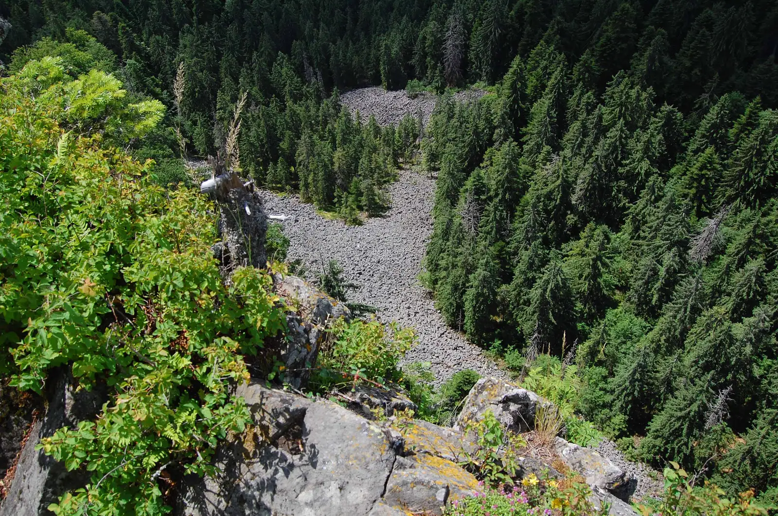 Pentru a ajunge la punctul de plecare al traseului putem folosi traseele TA, CR sau drumul în curs de asfaltare care urcă din Bucium. Împreună cu traseul CR intrăm în pădure și urcăm ușor. Temporar ne despărțim de acesta, trecând pe la ghețar (mai multe stânci între care este o fereastră prin care vine răcoarea gheții de dedesupt). Spre dreapta se desprind mai multe poteci nemarcate pe care putem să ne apropiem de baza peretelui cu stânci prăvălite, pentru a admira monumentul de jos, însă marcajul PR ocolește prin stânga (nord-vest). Într-o poiană unde se află montat un stâlp indicator începe urcușul mai abrupt. Urcăm câteva mici serpentine și ieșim la marginea abruptului, într-un punct de belvedere din care priveliștea este magnifică. După un binemeritat popas coborâm abrupt prin pădure, apoi pe un mic grohotiș până la un drumeag, unde de asemenea se află un stâlp indicator. Urmăm acest drum spre dreapta (sud-vest), iar după aproape 500 m îl părăsim spre dreapta pentru a poposi la un izvor rece dotat cu un loc de popas amenajat. De aici și până la punctul de unde am plecat mai sunt doar 200m.