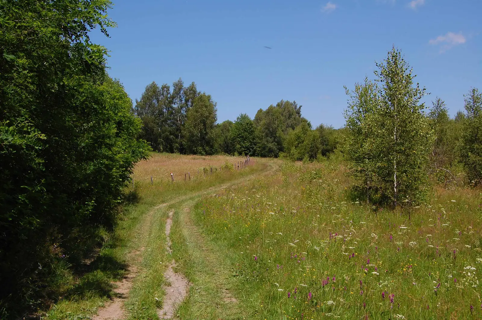 Din Piața Centrală coborâm întâi pe asfalt spre Gura Roșiei, iar după 1,3 km cotim spre stânga (sud) pe un drum de piatră care iese din localitate și trece prin poieni și pâlcuri de copaci. La Tăul Țapului (Tăul Găuri) schimbăm direcția spre stânga și începem urcușul pe dealul Hebatului. Traseul cotește ușor dreapta și începe o lungă coborâre aproximativ de-a lungul unei linii electrice de înaltă tensiune pe care o traversează de mai multe ori. Peisajul este pitoresc, o alternanță de pajiști sălbatice cu păduri întunecoase sau pâlcuri de mesteceni. Ne apropiem de orășelul Abrud, cuibărit jos în vale, dar la un moment dat (în apropiere de un ciurgău - o adăpătoare pentru vite) părăsim linia dealului spre stânga și coborâm abrupt în Valea Corna, la asfalt. Urmăm drumul asfaltat construit de-a lungul văii Corna în amonte circa 2 km și în localitatea Bunta, lângă niște garaje îl părăsim spre dreapta pe un drumeag care urcă în serpentine. Marcajul taie primele serpentine pe scurtături, apoi continuă tot la deal. Efortul ne este răsplătit de o priveliște tot mai cuprinzătoare asupra văii, iar în final ajungem pe culmea Dealului Măgulicea, unde urcușul se domolește și la o răscruce de drumuri marcajul cotește stânga (nord-est). Urmează o plimbare printr-o zonă pitorească cu poieni și pâlcuri de copaci, până întâlnim (lângă niște garaje) drumul asfaltat ce urcă din Abrud la mina Roșia Poieni. Urmăm acest drum aproape 1 km, apoi împreună cu traseul TA îl părăsim spre stânga pe un drumeag. La o intersecție de cinci drumuri de sub Piatra Corbului întâlnim traseul PR. Aici păstrăm direcția înainte pe un drum de piatră, iar din apropierea Tăului Brazi intrăm pe drumul îngust asfaltat care ne duce înapoi în Piața Centrală din Roșia Montană.